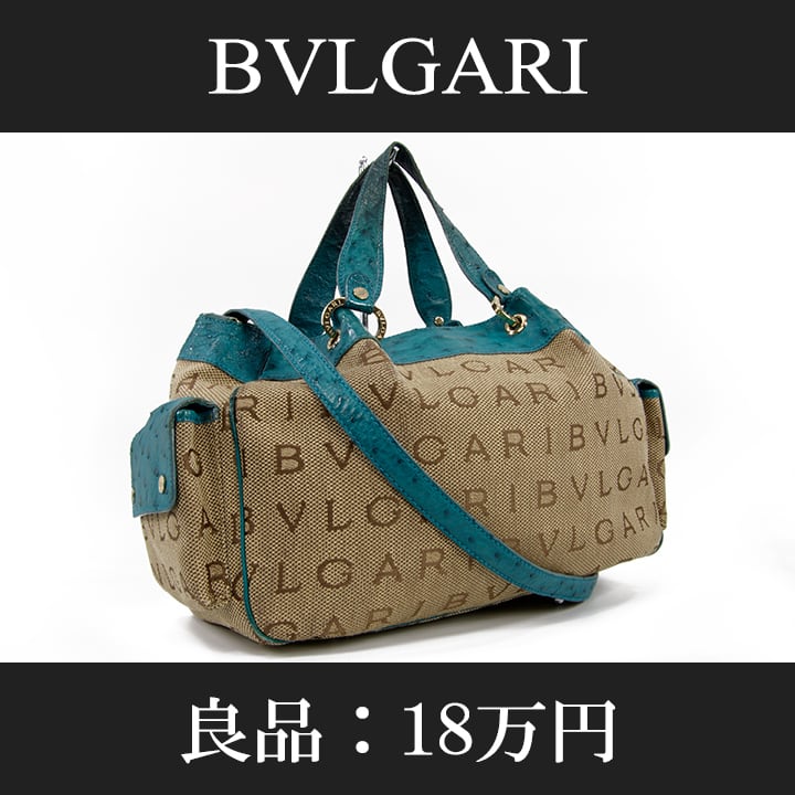【本物・送料無料・良品】BVLGARI・ブルガリ・2WAYショルダーバッグ(ロゴマニア・オーストリッチ・斜め掛け・人気・高級・L019)