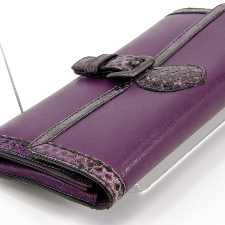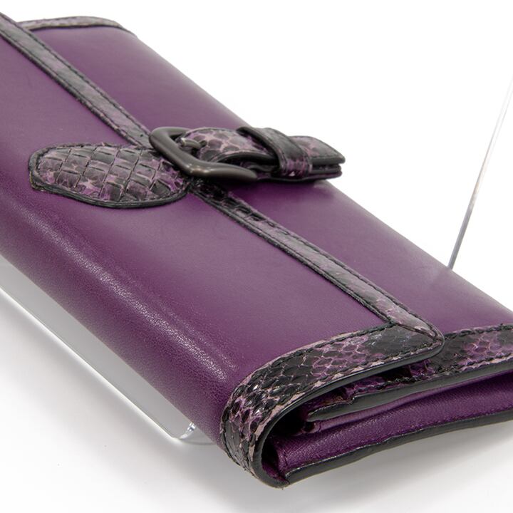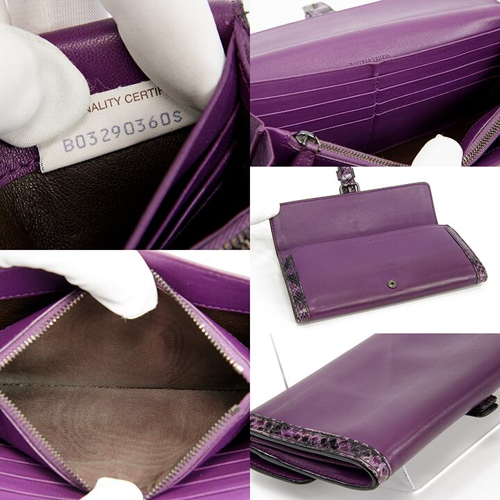 【本物・送料無料・良品】Bottega・ボッテガ・長財布・二つ折り財布(パイソン・高級・女性・メンズ・男性・紫色・パープル・D103)