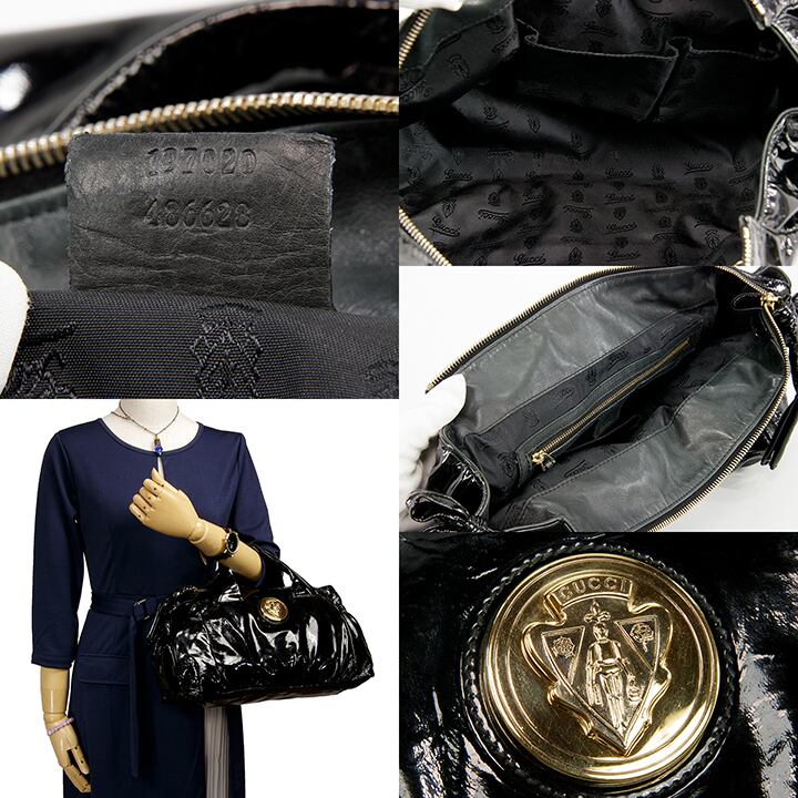 【本物・送料無料・良品】GUCCI・グッチ・ハンドバッグ(ヒステリア・人気・ロゴ・レア・珍しい・黒・ブラック・鞄・バック・L038)