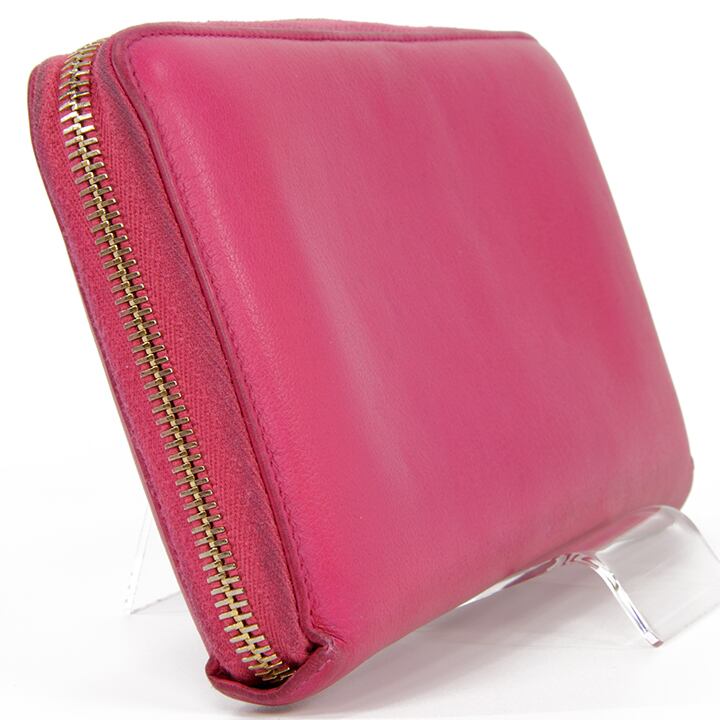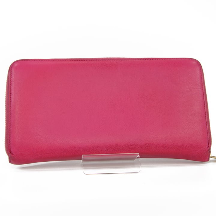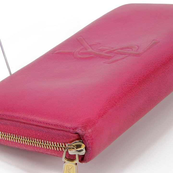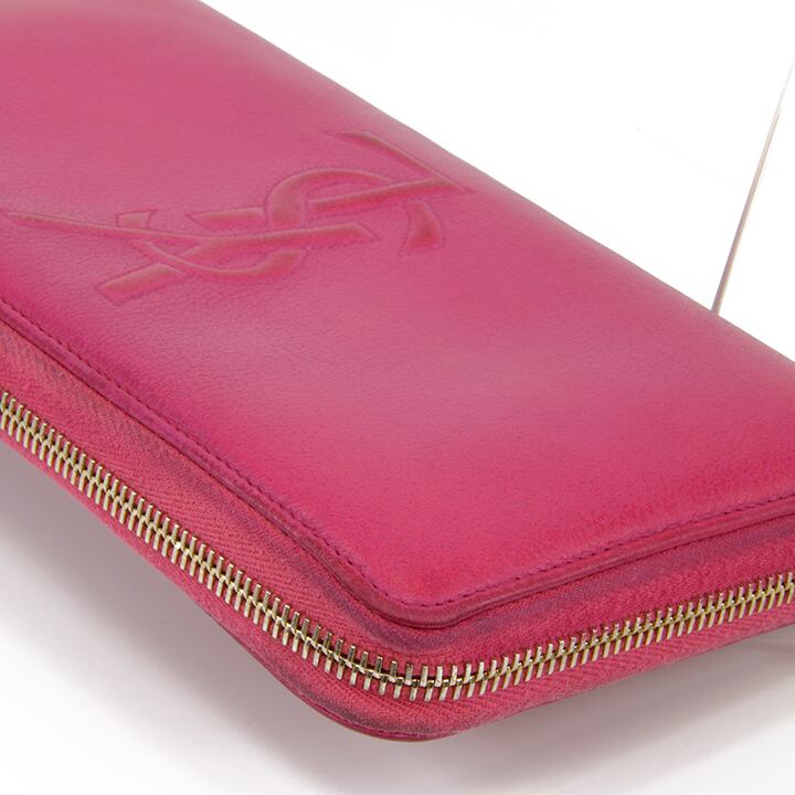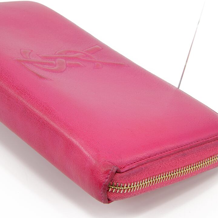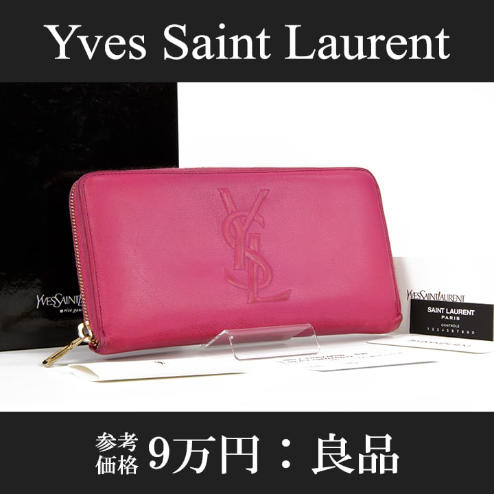【本物・送料無料・良品】Laurent・サンローラン・長財布・ラウンドファスナー(人気・目立つ・桃色・ピンク・YSL・ロゴ・D114)