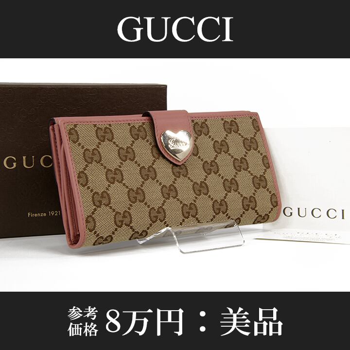 【本物・送料無料・美品】GUCCI・グッチ・長財布・二つ折り財布(ラブリーハート・人気・綺麗・桃色・ピンク・GGキャンバス・D115)