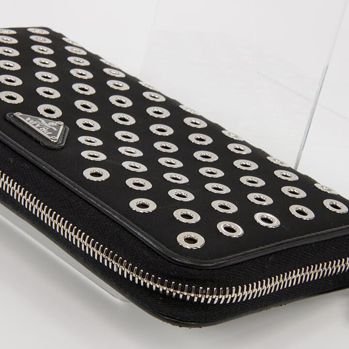 【本物・送料無料・極美品】PRADA・プラダ・長財布・ラウンドファスナー(人気・綺麗・サークル・黒・ブラック・珍しい・H042)