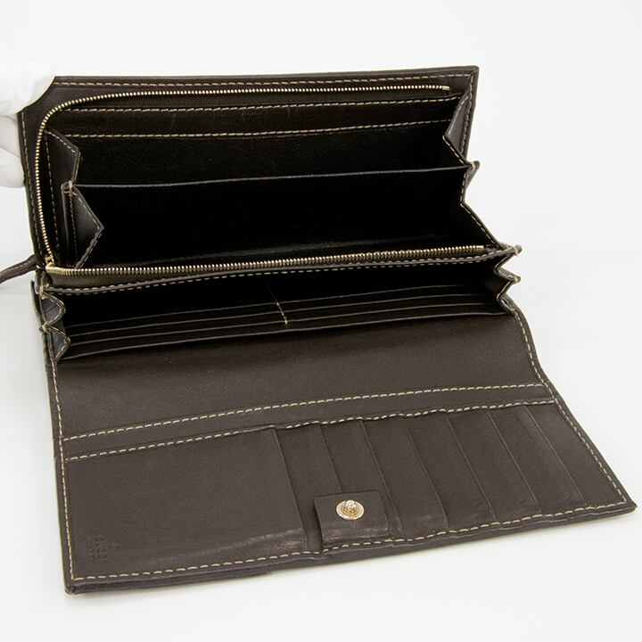 こちらのお財布は、一目でグッチとわかるGG総柄・インターロッキングGの金具が特徴的で、収納力が高く使い心地の良さと、洗練された美しさがございます。