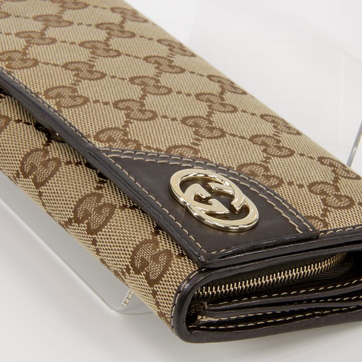 2022年5月ごろ、日本最大級の古物市場・エコリングで購入いたしました、グッチの大人気ライン、インターロッキングG (GGキャンバス)の長財布でございます。