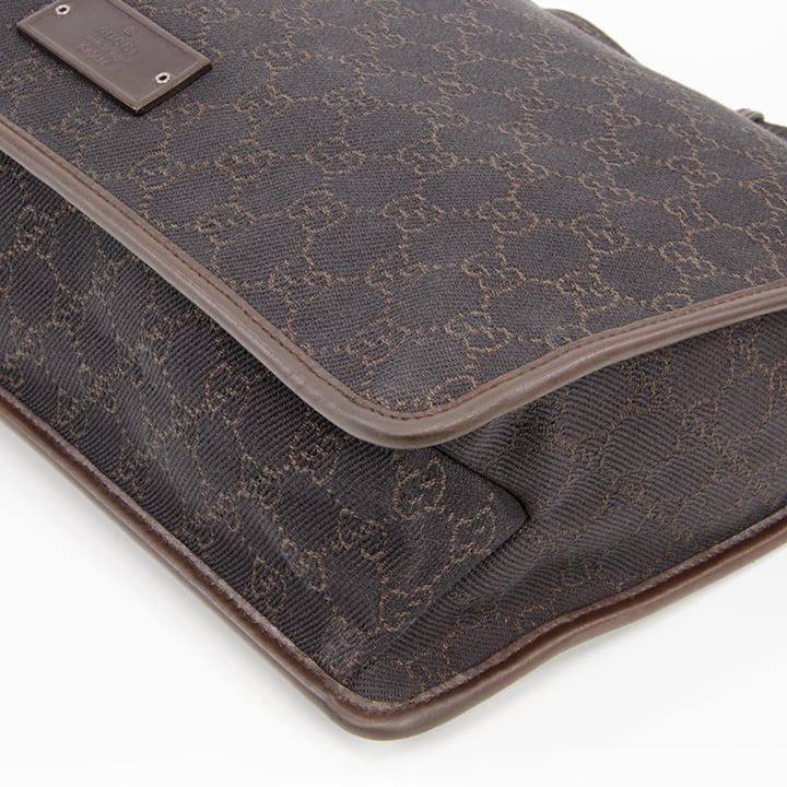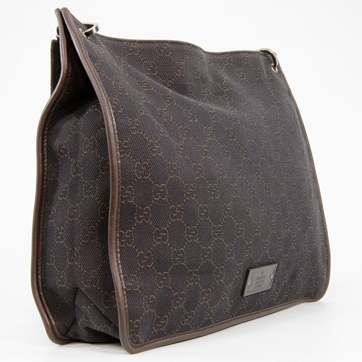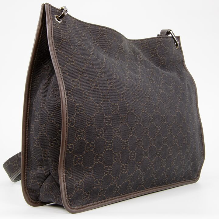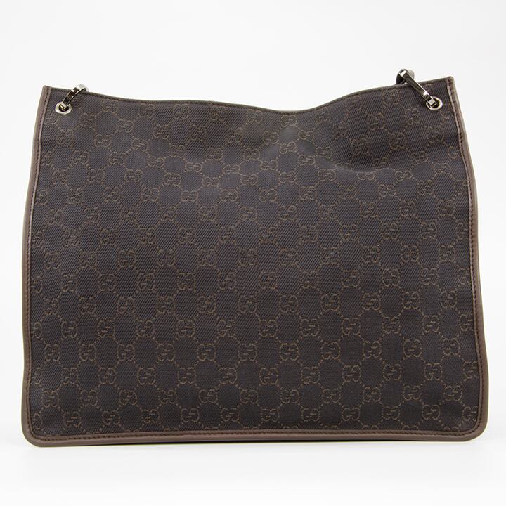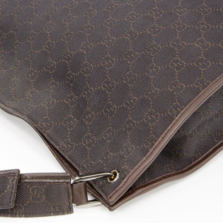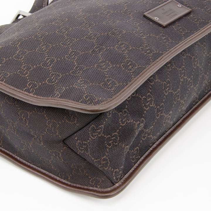 落ち着いたカラーのキャンバスに、一目でグッチとわかるGG総柄が、カジュアルでありながら落ち着いた大人の魅力を感じさせます。