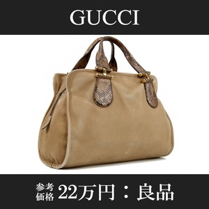 【本物・送料無料・良品】GUCCI・グッチ・ハンドバッグ(パイソン・人気・ベージュ・ブラウン・女性・メンズ・男性・バック・L049)