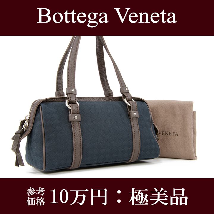 【本物・送料無料・極美品】Bottega・ボッテガ・ハンドバッグ(人気・綺麗・レア・ネイビーブルー・ブラウン・鞄・バック・I074)