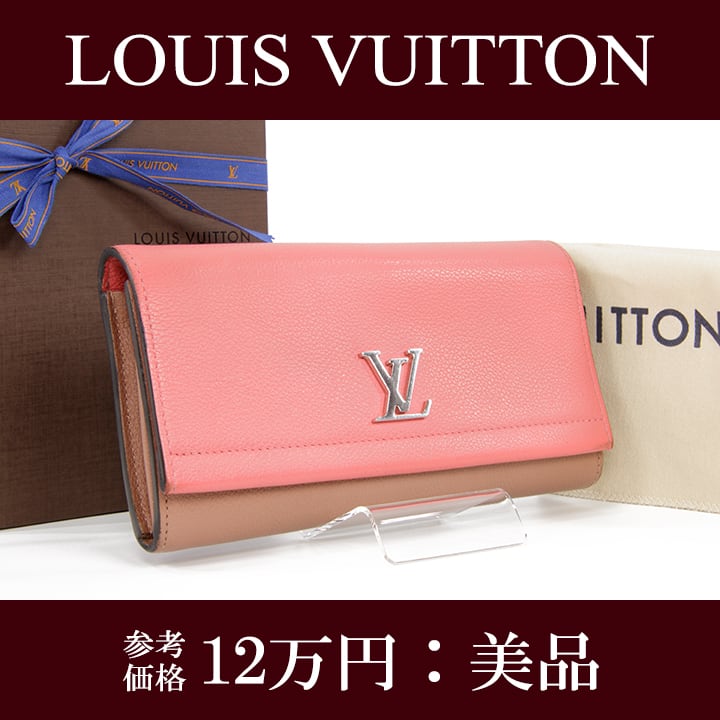 【本物・送料無料・美品】VUITTON・ヴィトン・長財布・二つ折り財布(ロックミー・ブロッサム・綺麗・バイカラー・ピンク・H043)