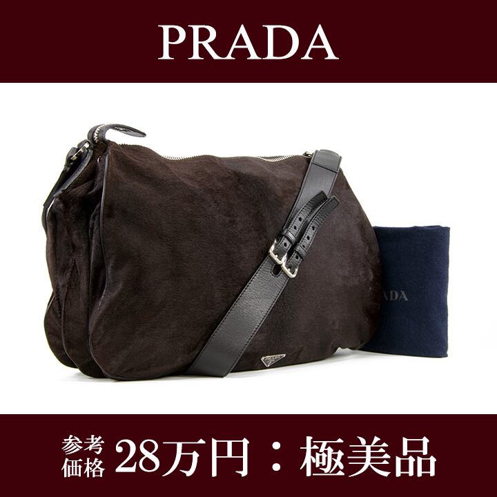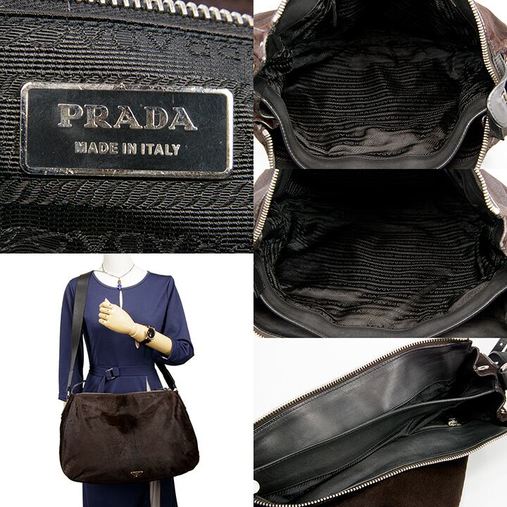 【本物・送料無料・極美品】PRADA・プラダ・ショルダーバッグ(ハラコ・綺麗・斜め掛け・茶色・ブラウン・女性・メンズ・鞄・E243)