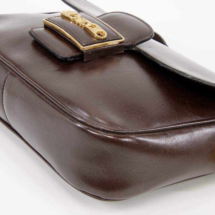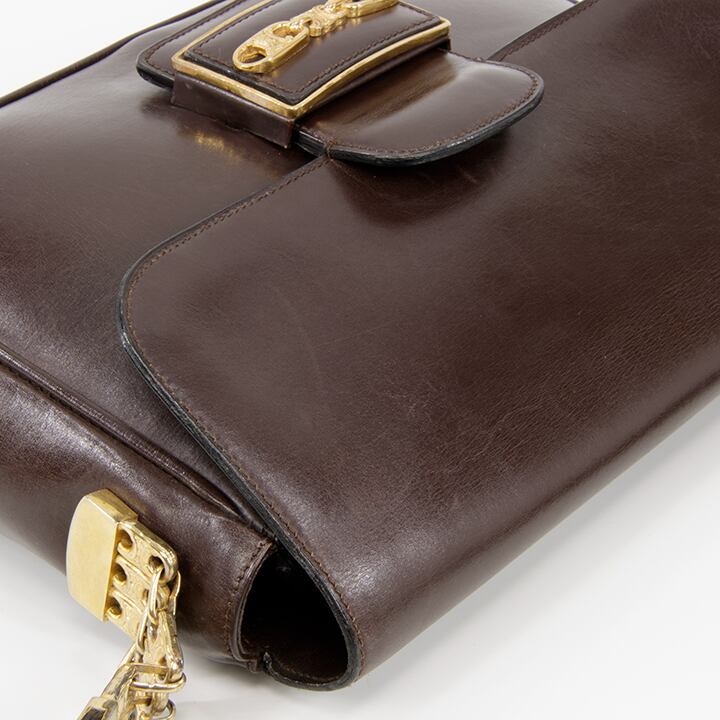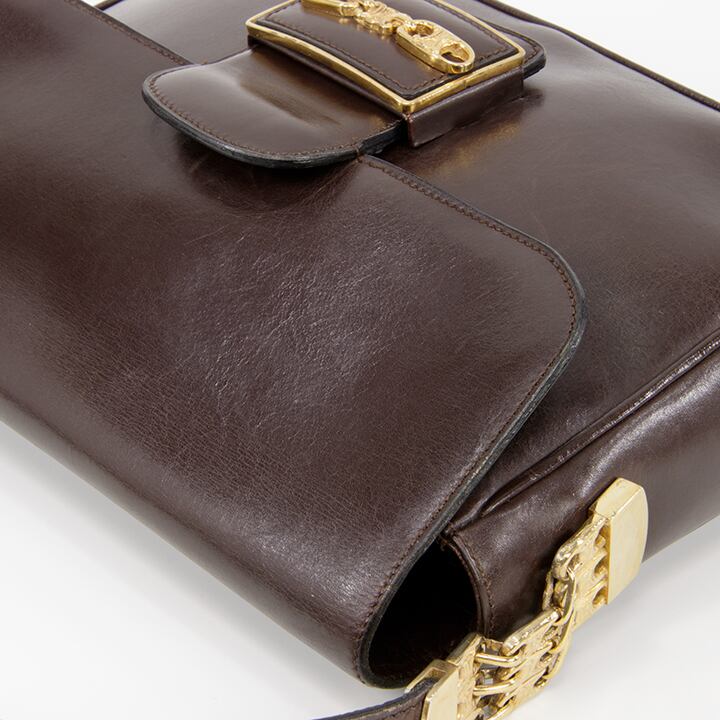 オールドセリーヌの中でも幻のモデルとも言われている、マカダムの金具が多く装飾された逸品。一目でセリーヌとわかる存在感と高級皮革の深い味わいが特徴でございます。