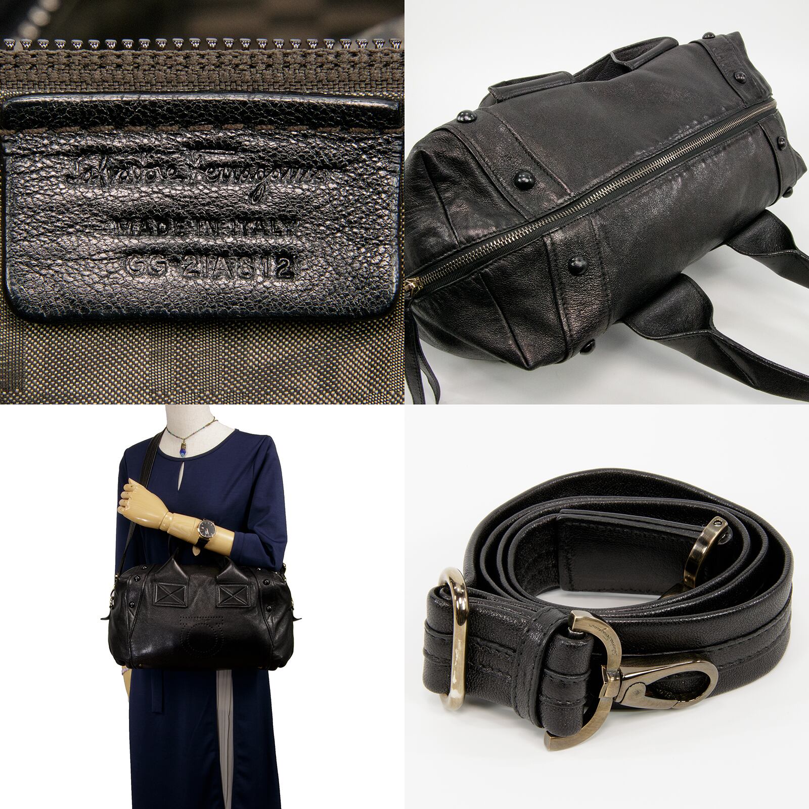 【本物・送料無料・美品】Ferragamo・フェラガモ・2WAYショルダーバッグ(綺麗・斜め掛け・黒・ブラック・女性・男・メンズ・F136)
