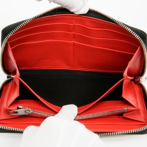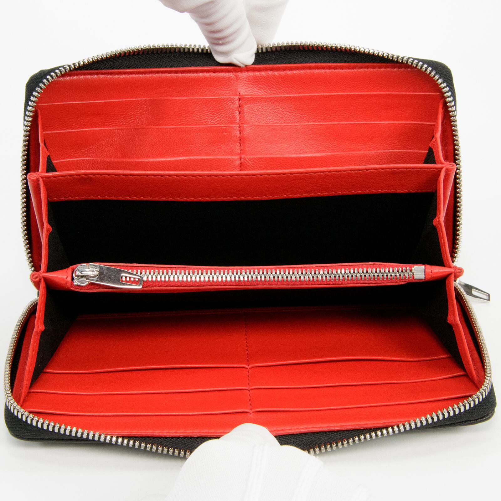 2014年〜2016年に販売されていた比較的新しい、スプレーコレクションのラウンドファスナーで、黒一色のレザーに赤のスプレーデザインによる組み合わせは、現在入手困難でございます。