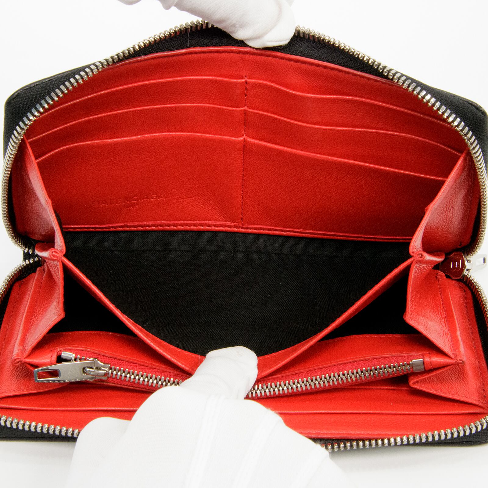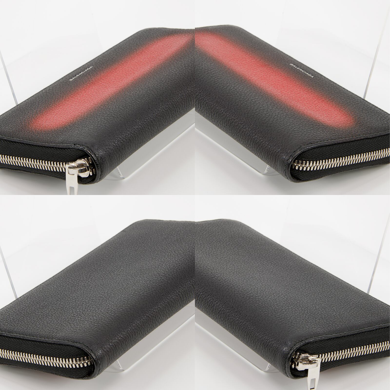 【本物・送料無料・極美品】Balenciaga・バレンシアガ・長財布・ラウンドファスナー(スプレー・人気・綺麗・赤・レッド・黒・D126)