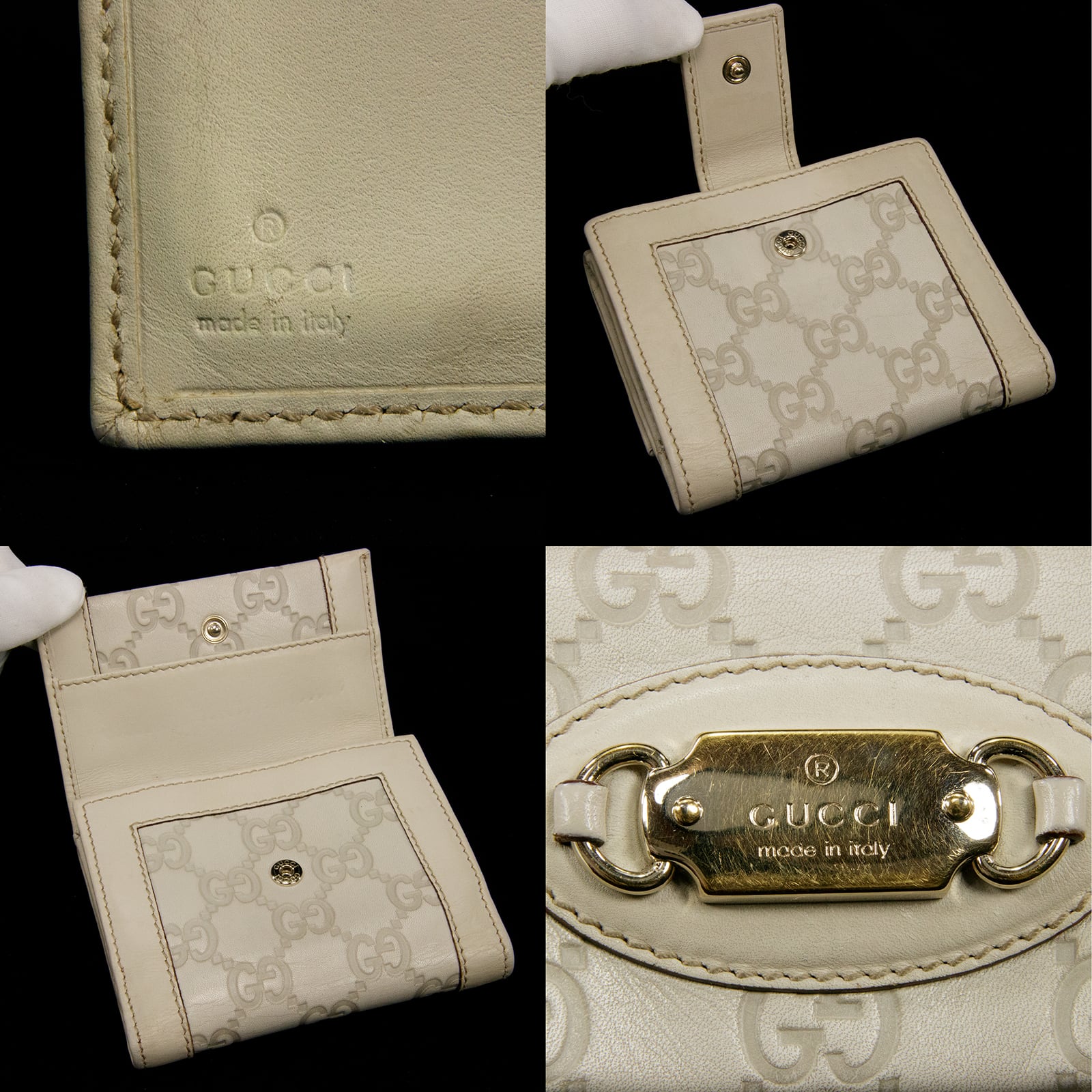 一目でグッチとわかるGG総柄に加えて、ゴールドカラーのグッチのロゴプレートが前面にあるコンパクトなお財布。存在感だけでなく、「最高のグッチ」を意味するグッチシマならではの、厳選された最高級カーフの深い味わいも魅力でございます。