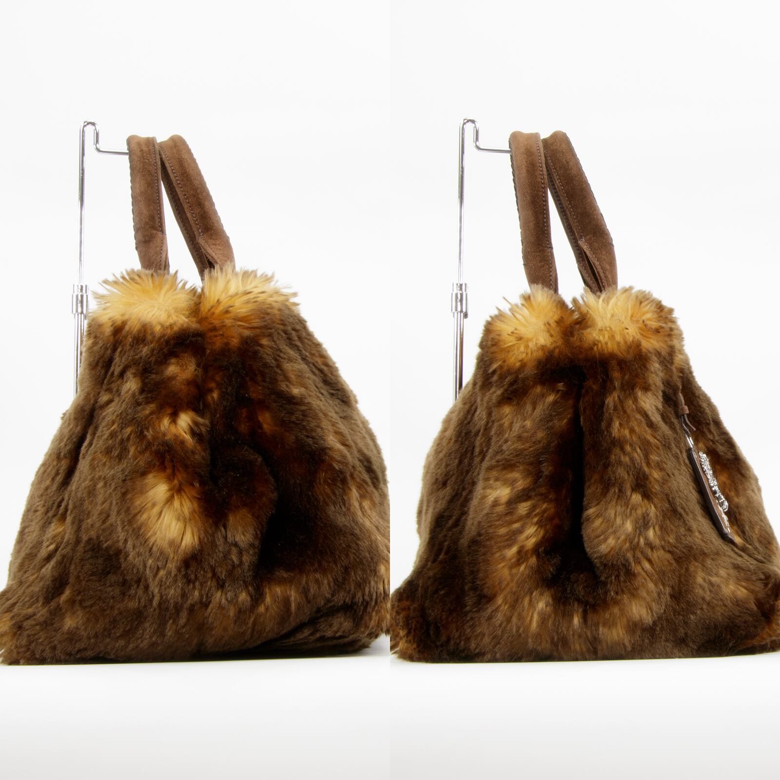 プラダのエコラパンシリーズは、世界的な動物愛護の観点から開発された「フェイクファー(Eco Fur・ECO RAPIN)」を使用して、メゾンの姿勢(リアルファーの削減)を示しながらも、プラダならではの華やかさを追求したハイクラスラインでございます。