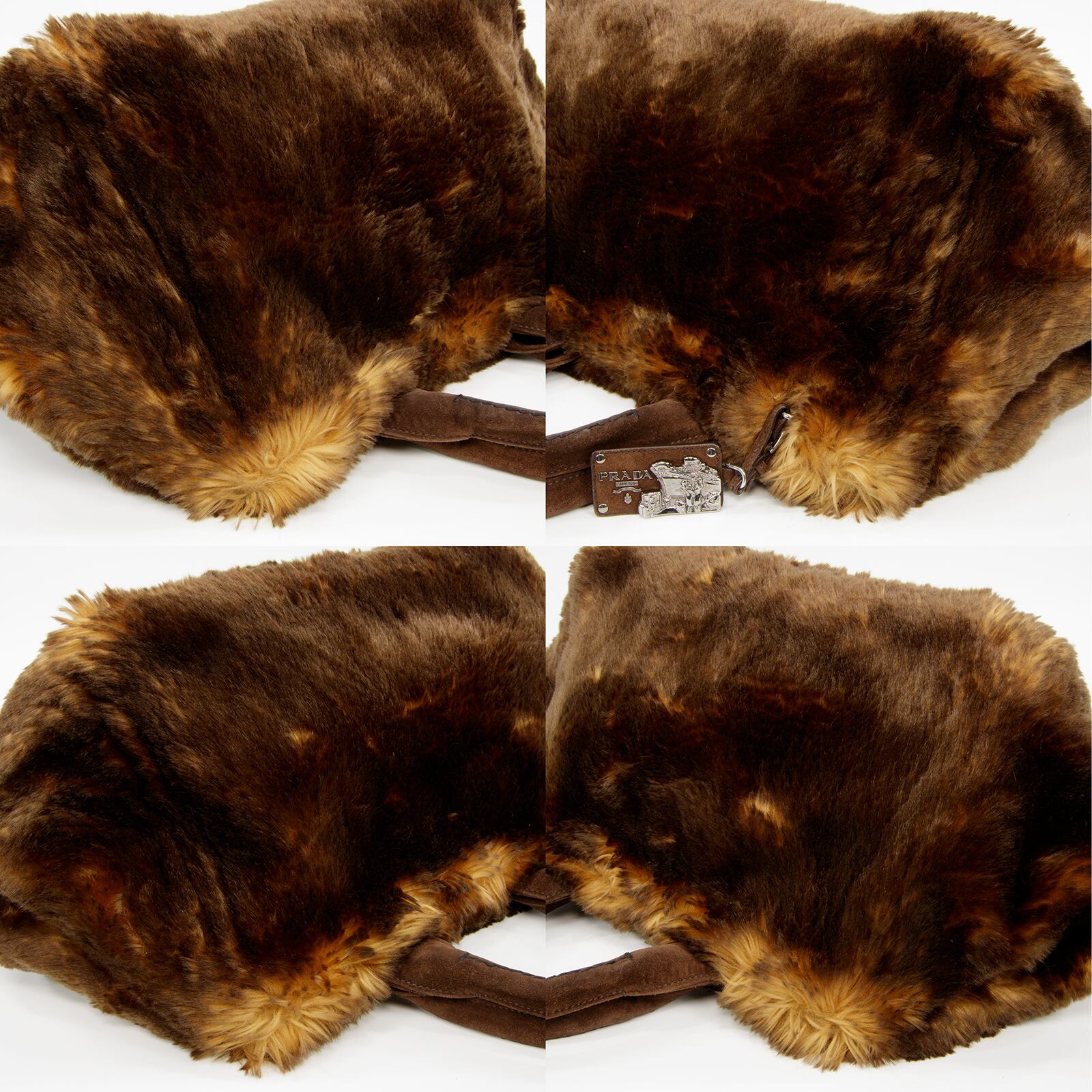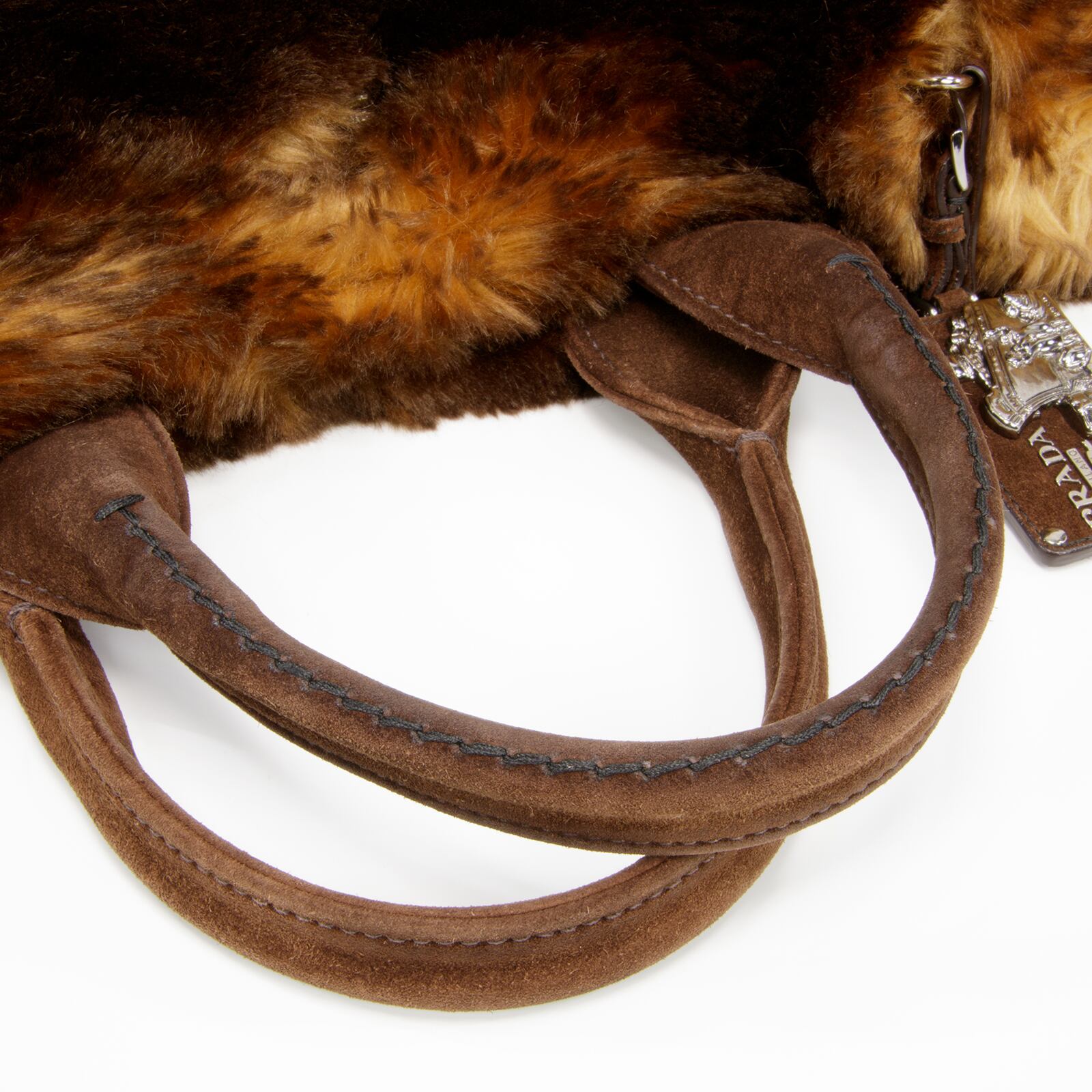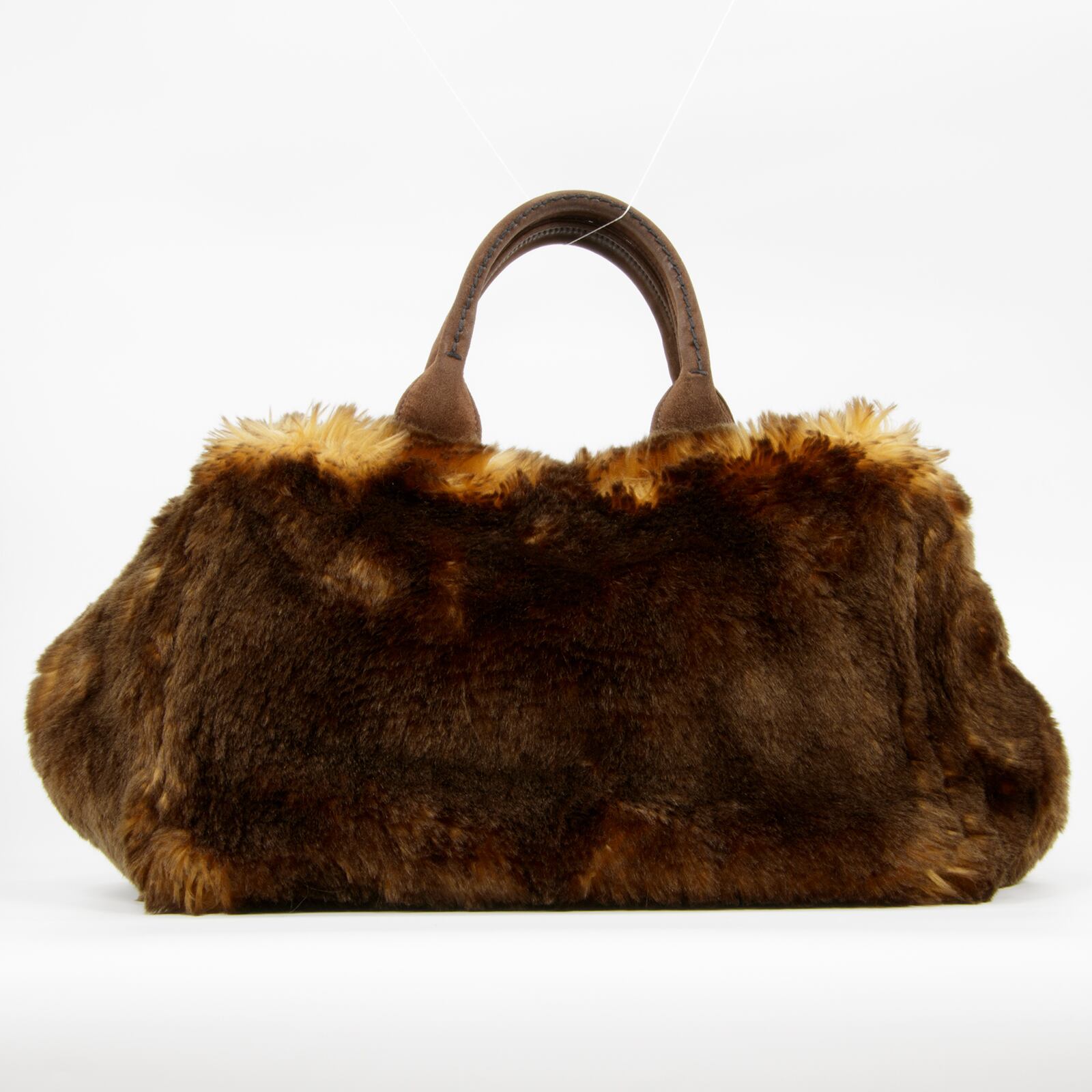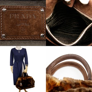 【本物・送料無料・美品】PRADA・プラダ・ハンドバッグ(カナパ エコラパン・人気・綺麗・茶色・ブラウン・フェイクファー・B173)
