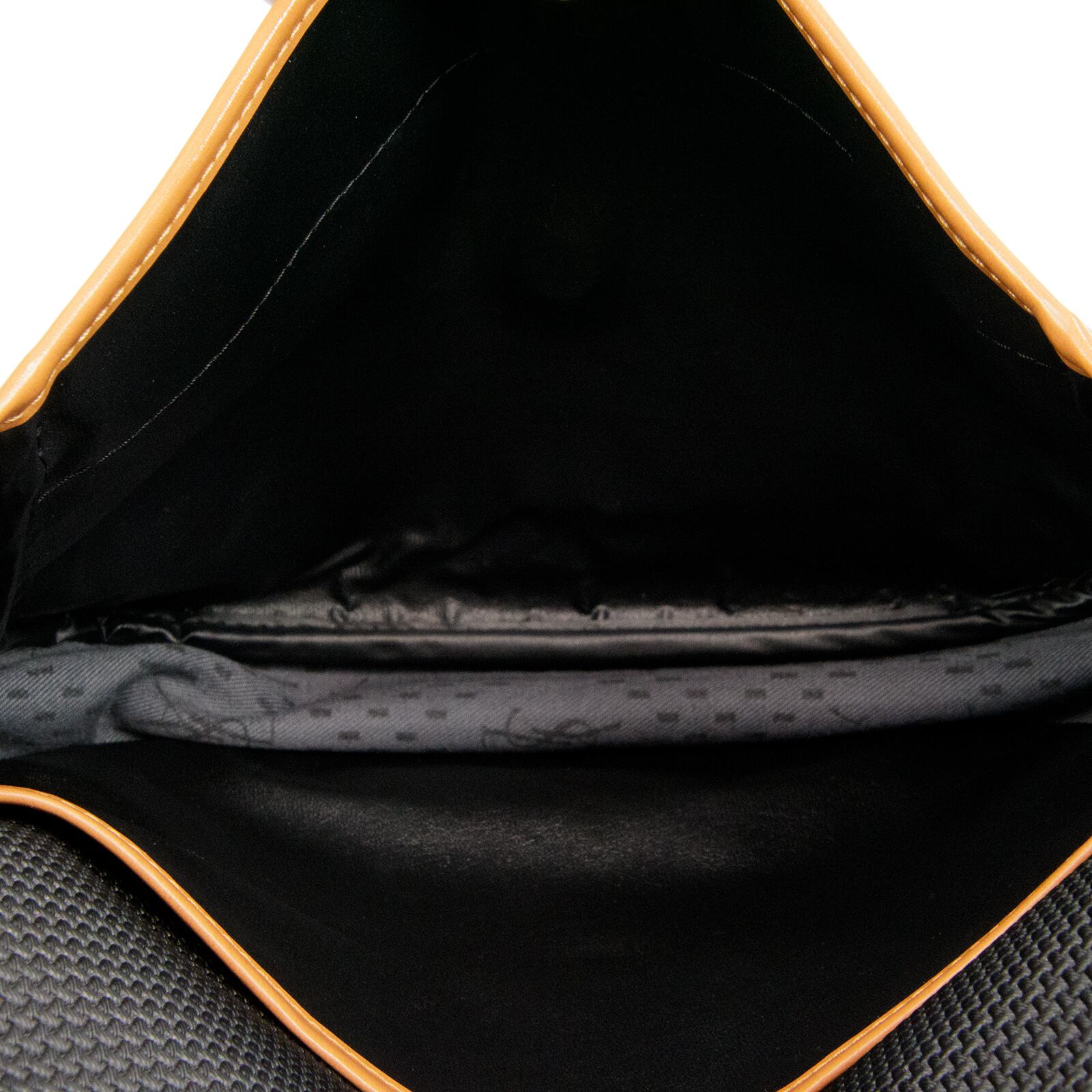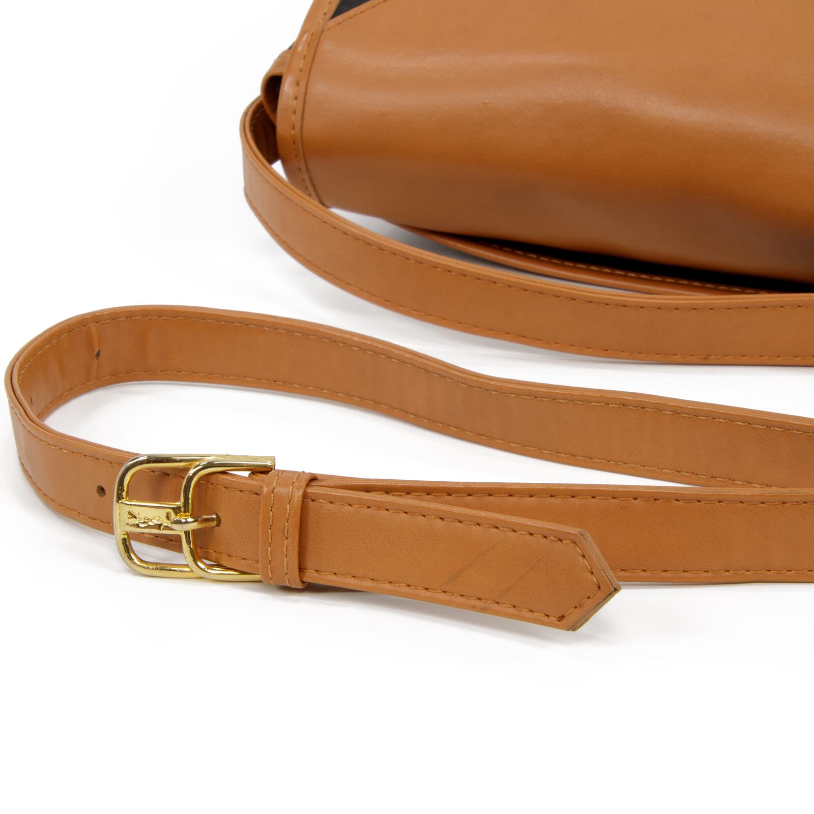 ヴィンテージのイヴ・サンローランの中でも大人気のデザインで、ブラック・ブラウンのバイカラーと前面のYSLロゴプレートが、一目でイヴ・サンローランとわかる存在感を演出しております。