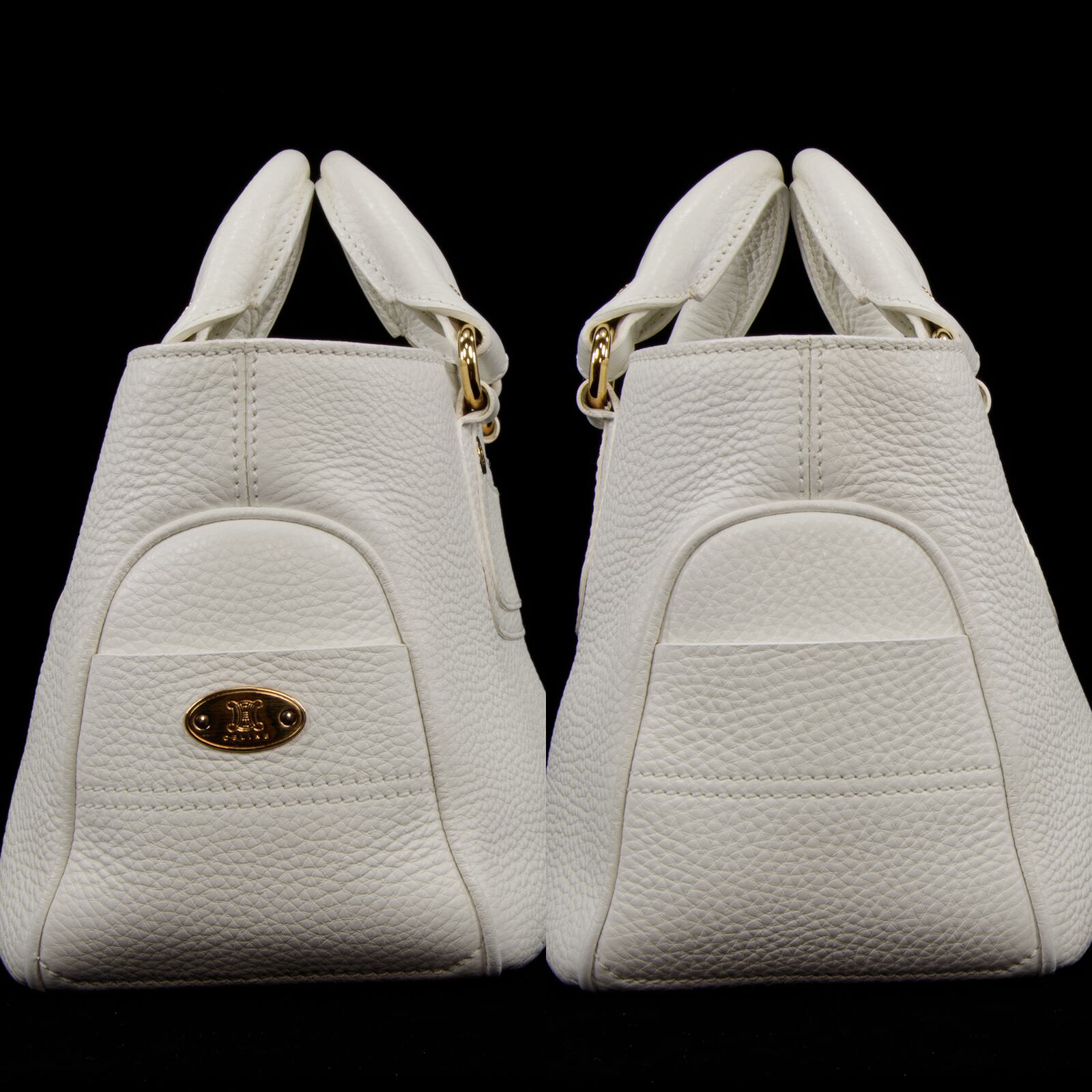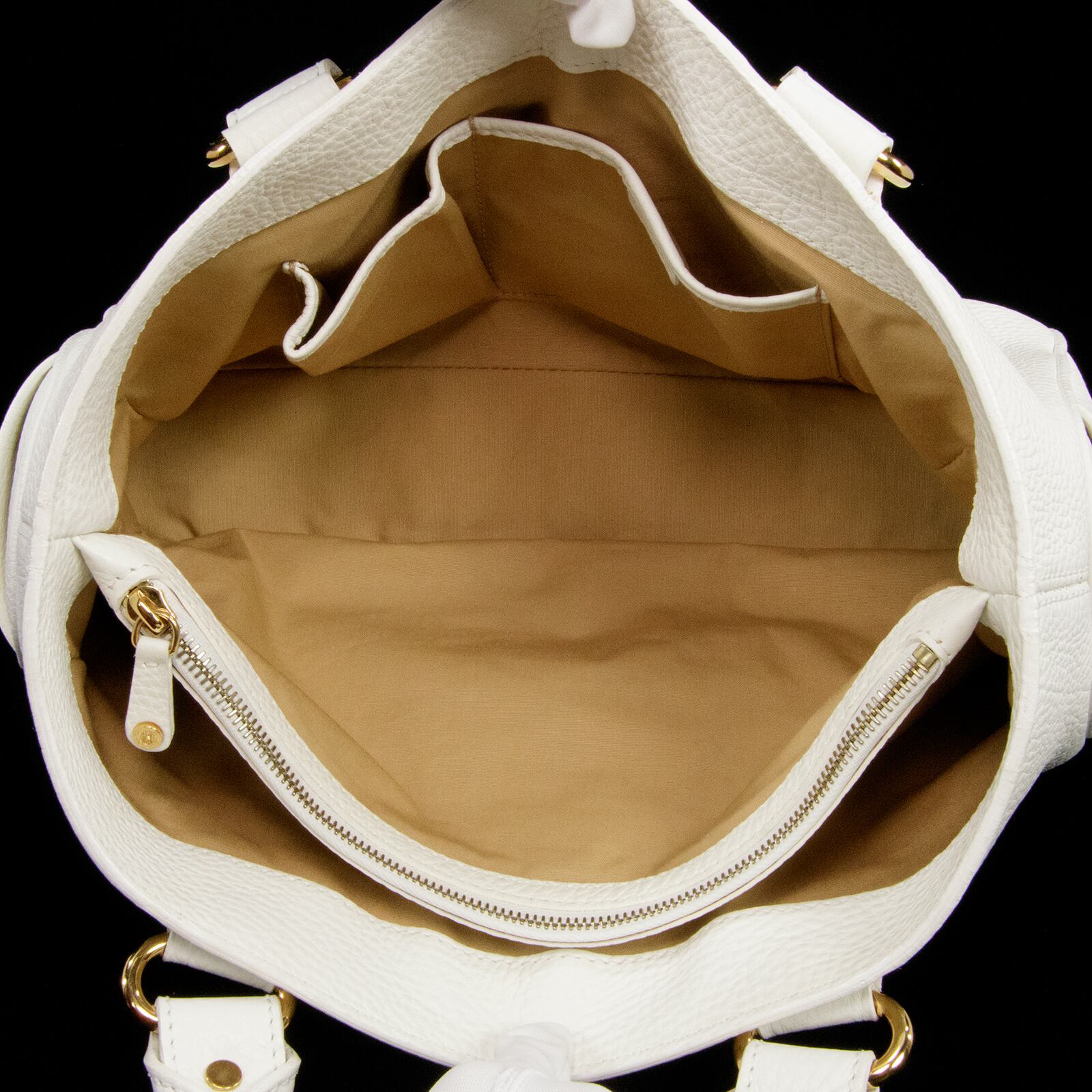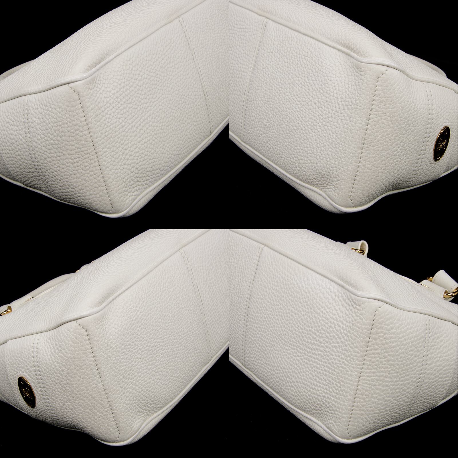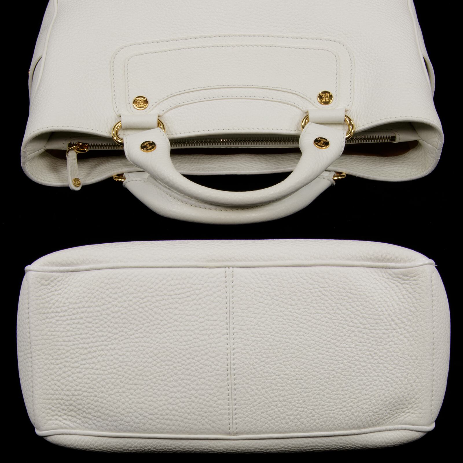 白一色の高級皮革とゴールドカラーの金具の組み合わせが、気品が高い落ち着いた大人の魅力を演出しており、丈夫で軽い・収納スペースが多く物の出し入れがしやすいなど、使い心地の良さも素晴らしく、どのような場面でもお客様の洗練された美しさを引き立ててくれます。