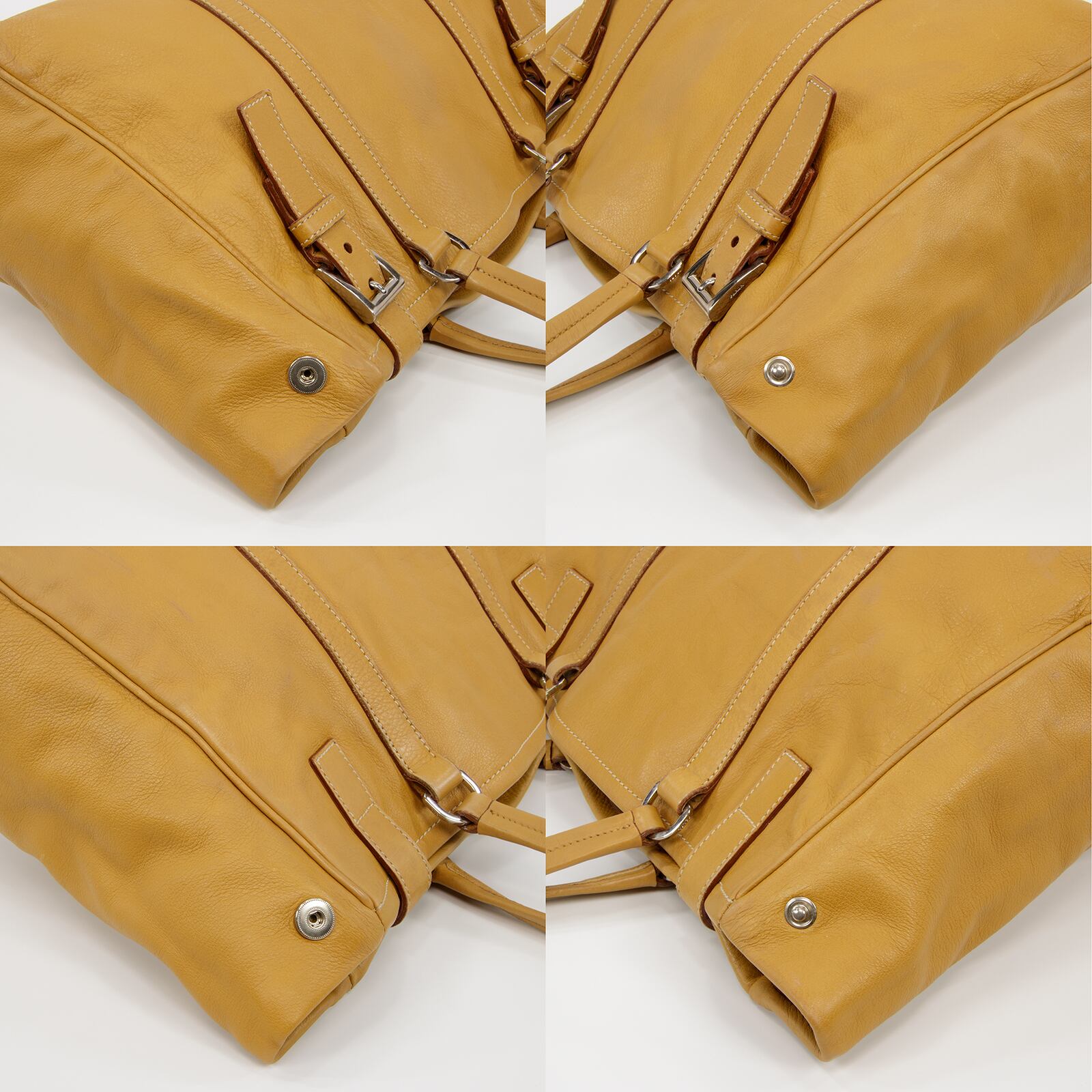 しっとりと柔らかな高級皮革を全面にあしらった、プラダの中でも希少なトートバッグで、落ち着いた配色でありながら、側面のPRADAのロゴプレートが存在感を演出しており、上品で落ち着いた大人の魅力を感じさせます。