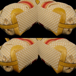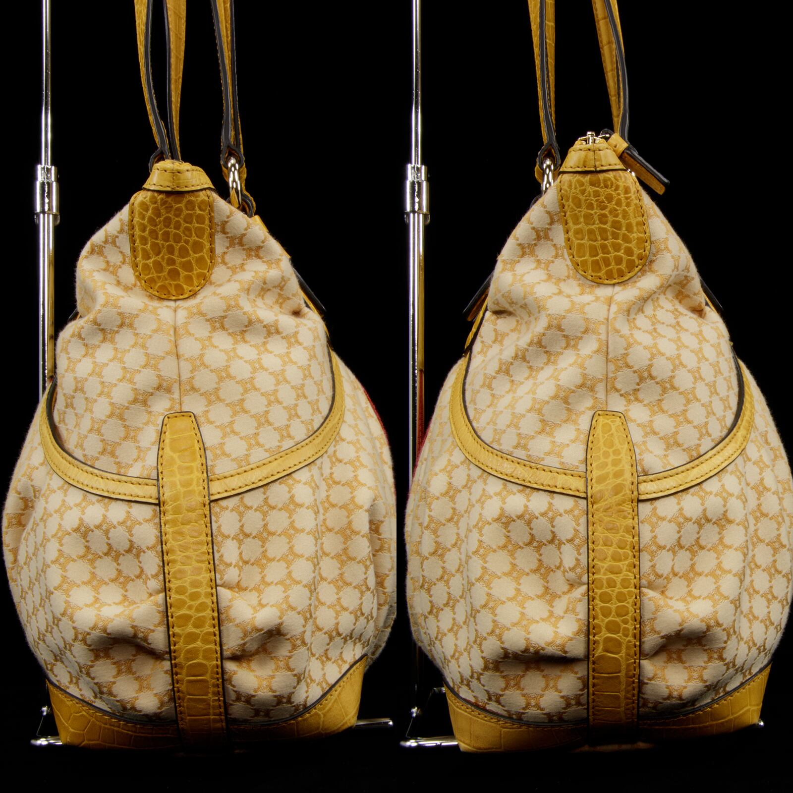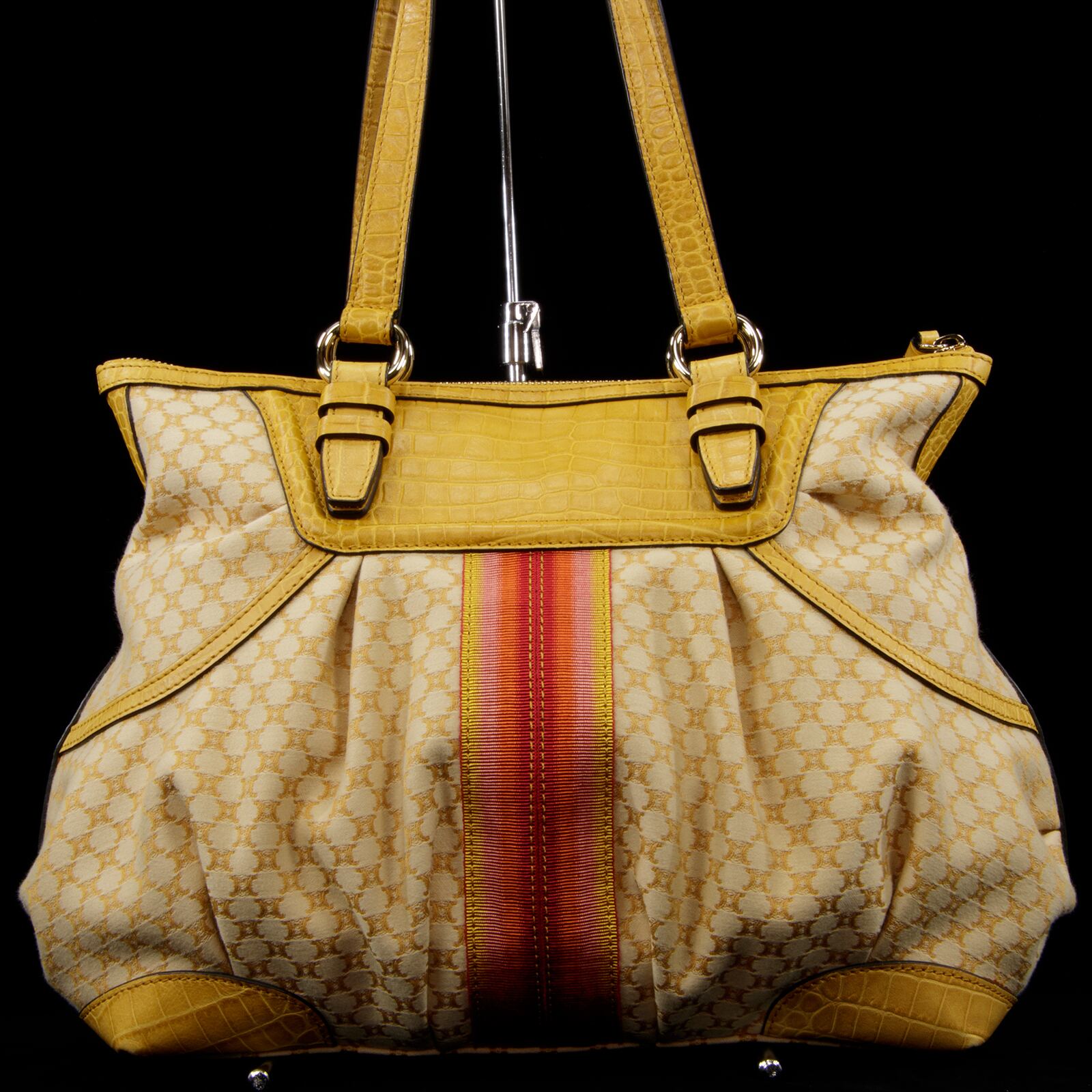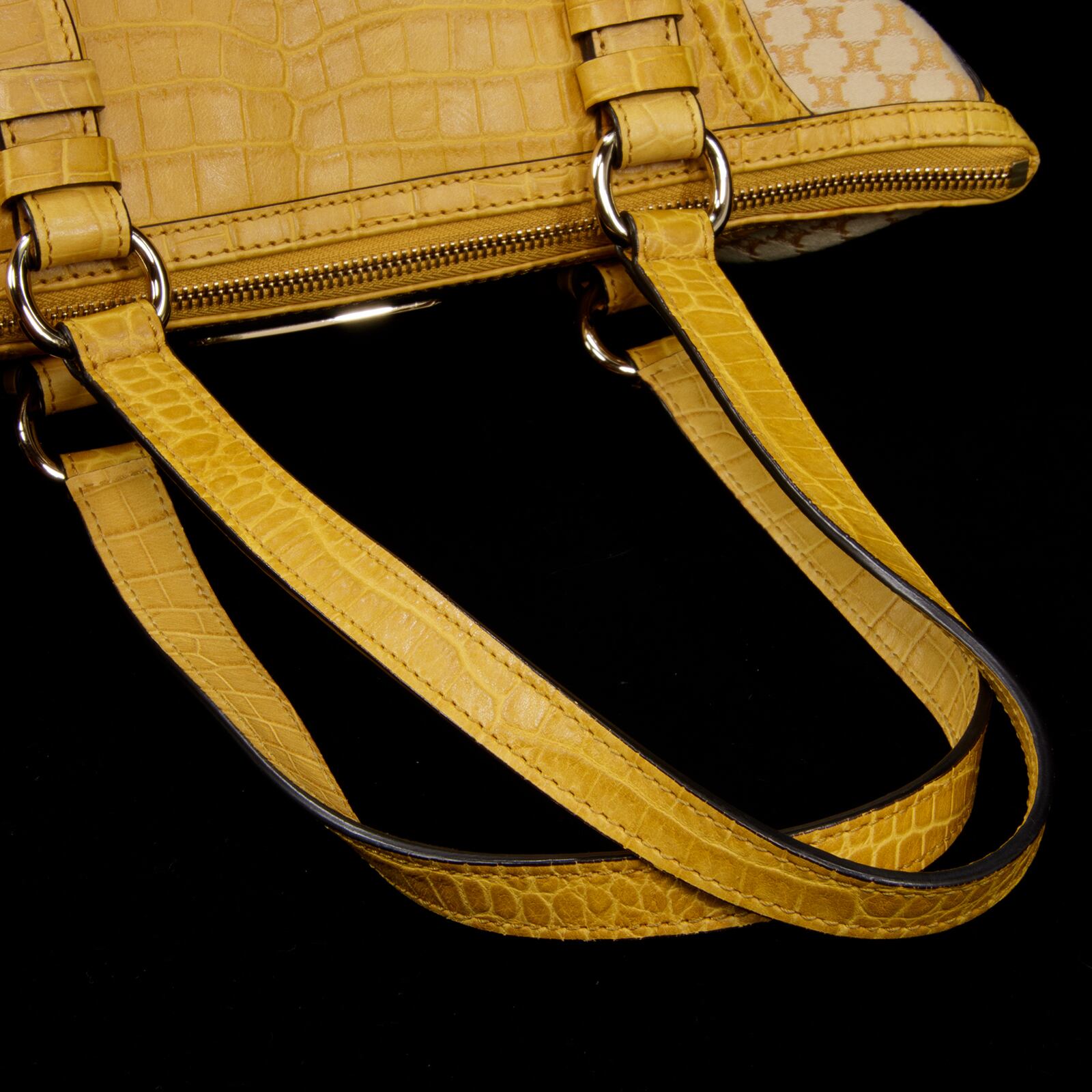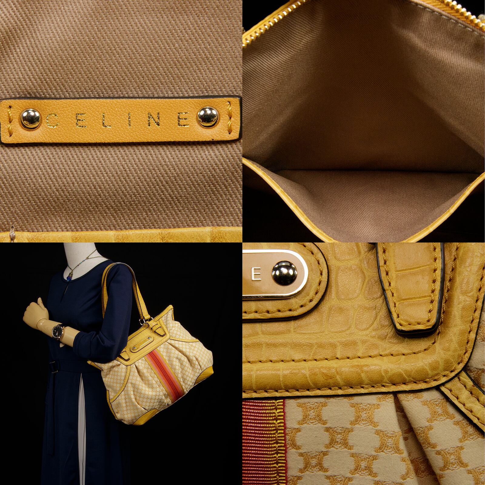 【本物・送料無料・美品】セリーヌ・ショルダーバッグ(人気・綺麗・マカダム柄・目立つ・ベージュ・イエロー・鞄・バック・F144)