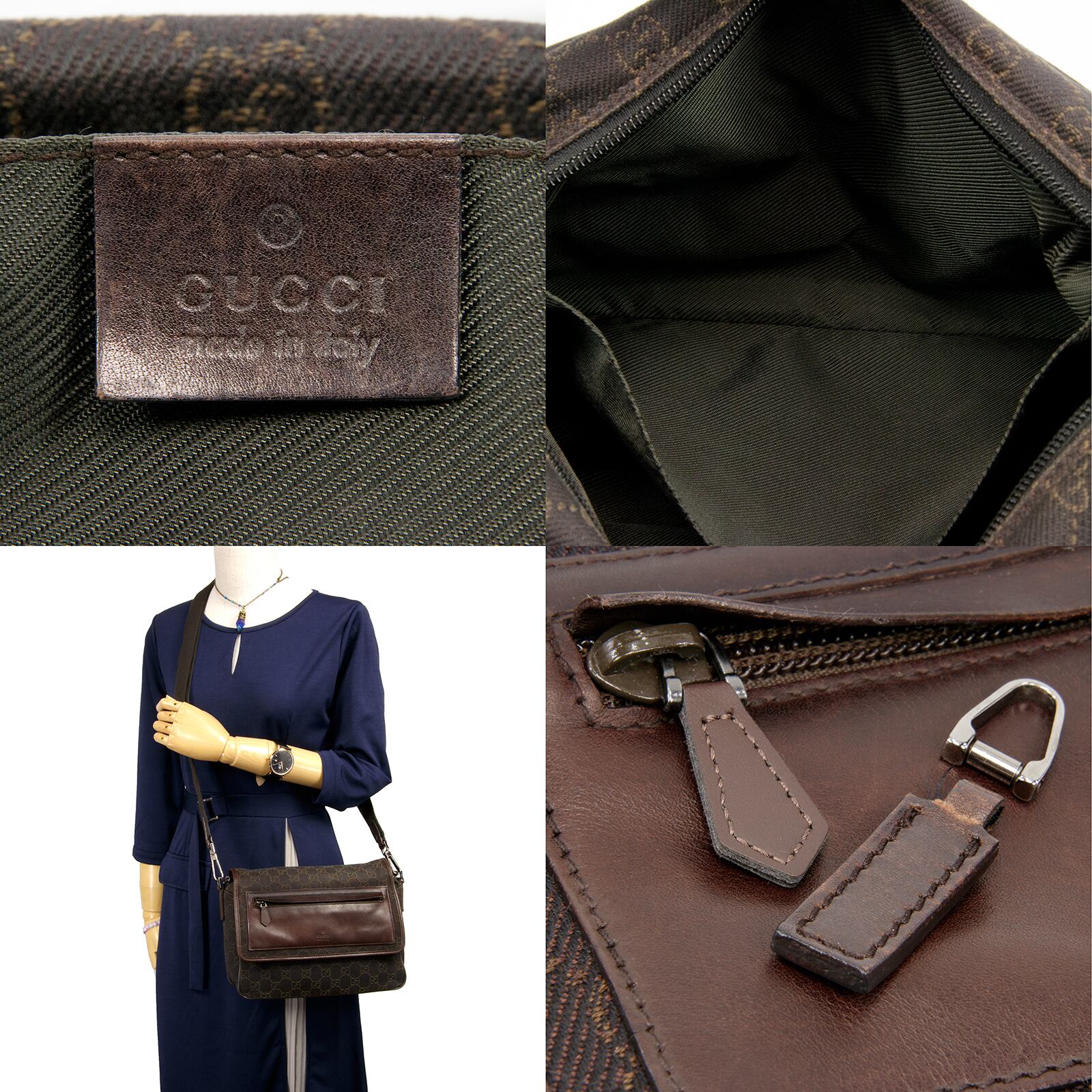 【本物・送料無料・良品】グッチ・ショルダーバッグ(GGキャンバス・人気・斜め掛け・茶色・ブラウン・女性・メンズ・男性・A745)