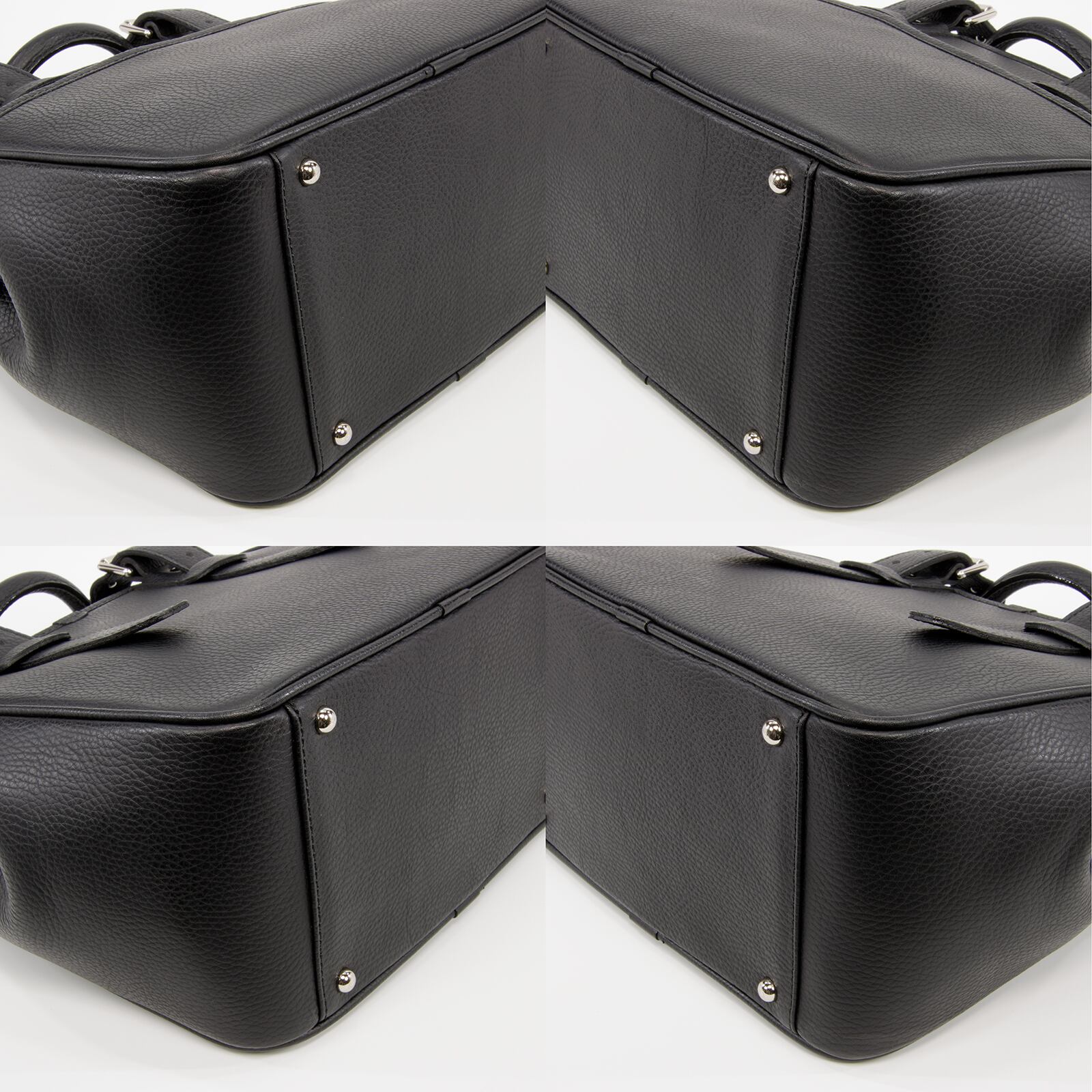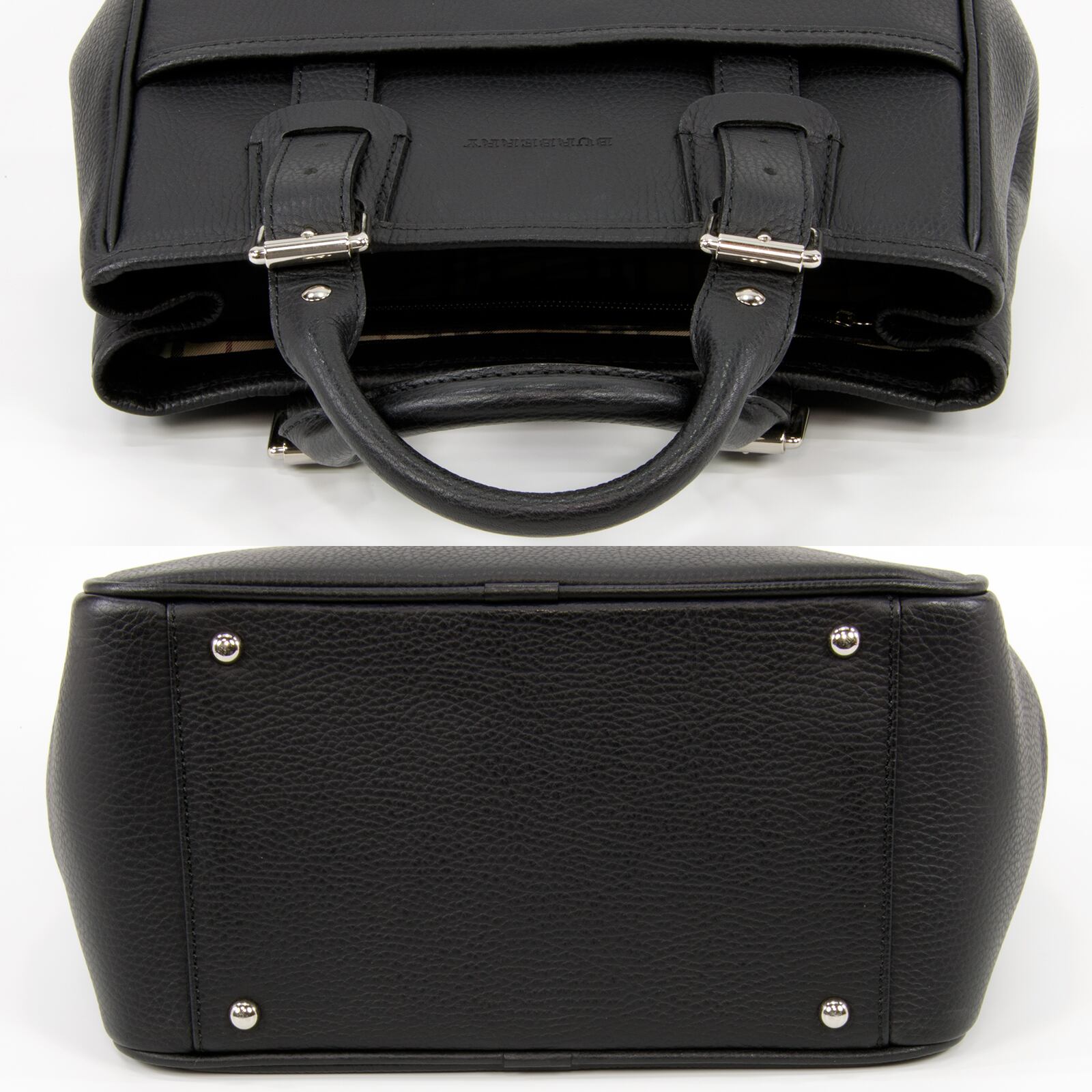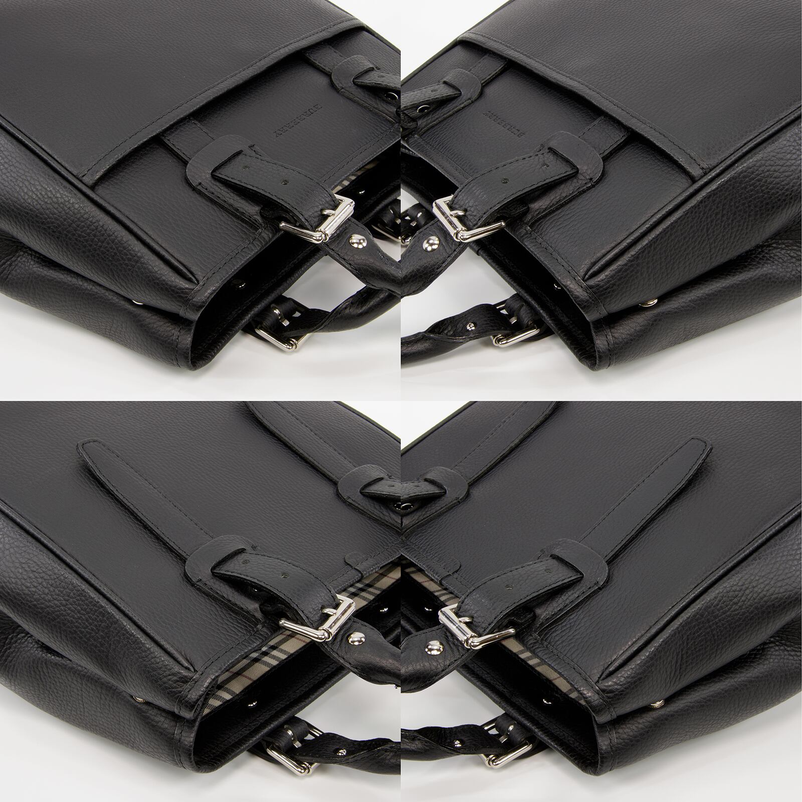 バッグの内側は、一目でバーバリーとわかるバーバリーチェック(ノバチェック)柄になっており、バッグの外側は、ブランドらしさを主張しすぎず、黒一色の厳選されたレザーと自立可能なかっちりとしたフォルムが、落ち着いた大人の魅力を感じさせます。