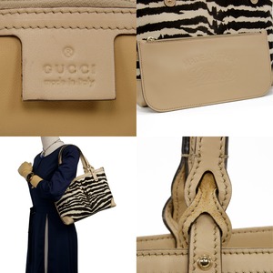【本物・送料無料・良品】グッチ・トートバッグ(ハラコ・ゼブラ柄・最高級・ポーチ付き・ショルダーバック・鞄・バック・E268)