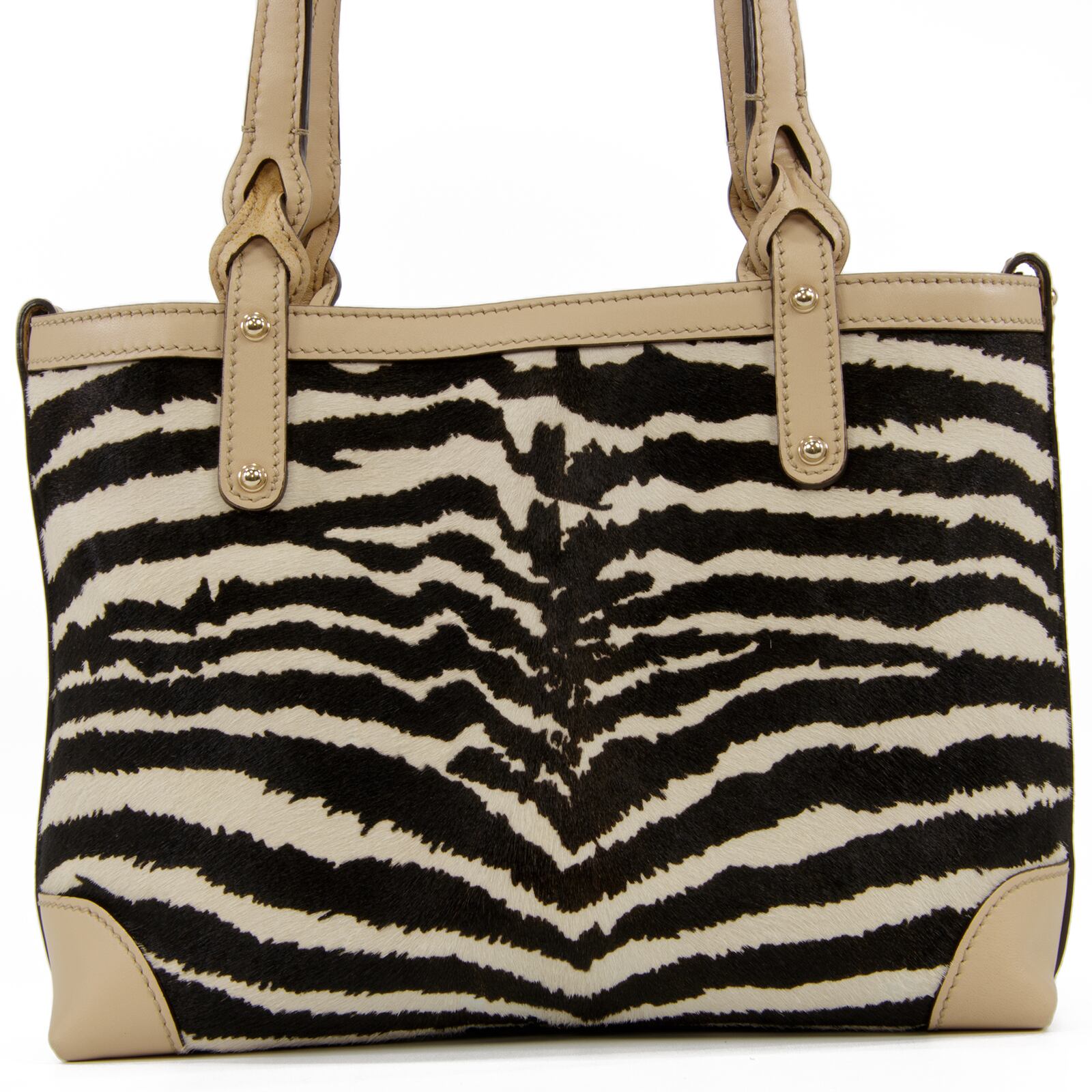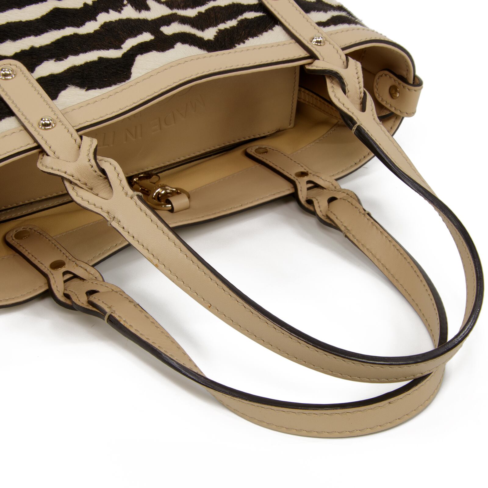 全世界で最高級品と言われるハラコをゼブラ柄であしらった、グッチのハイクラスラインのトートバッグ。「MADE IN ITALY BY gucci」の特大ロゴが刻印されたポーチも付いている、大人気のシリーズでございます。