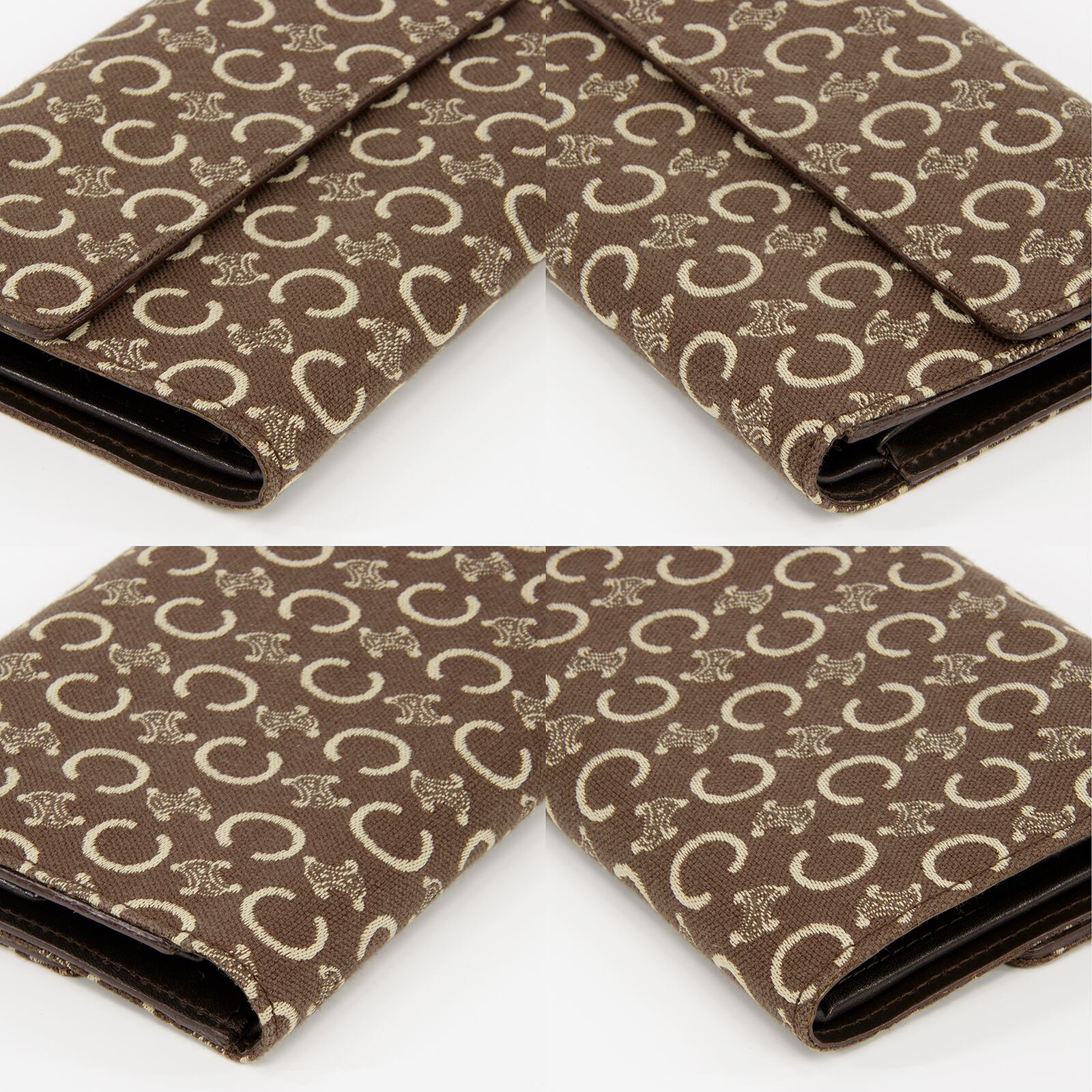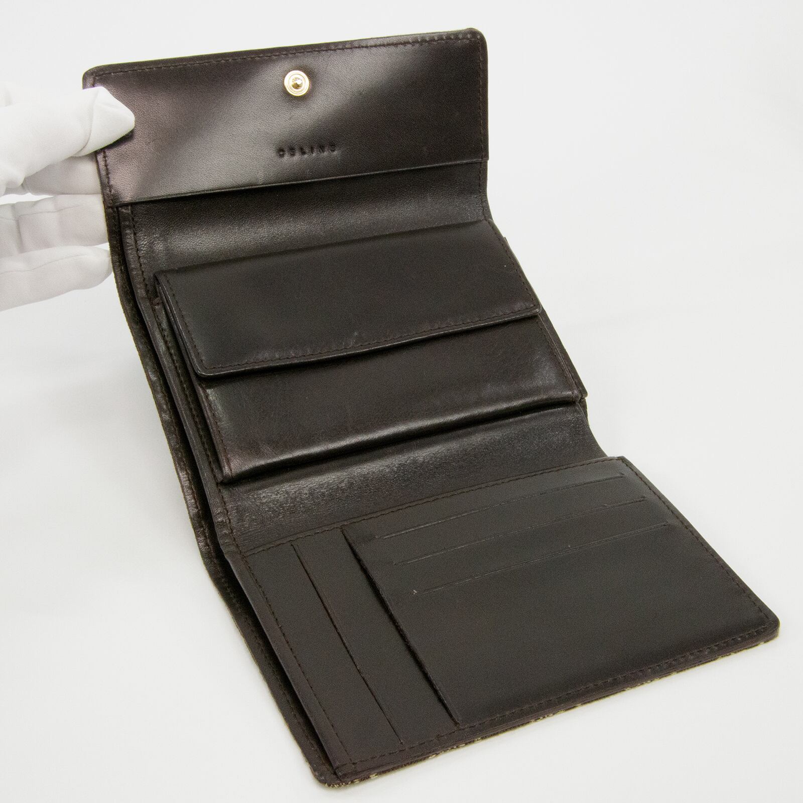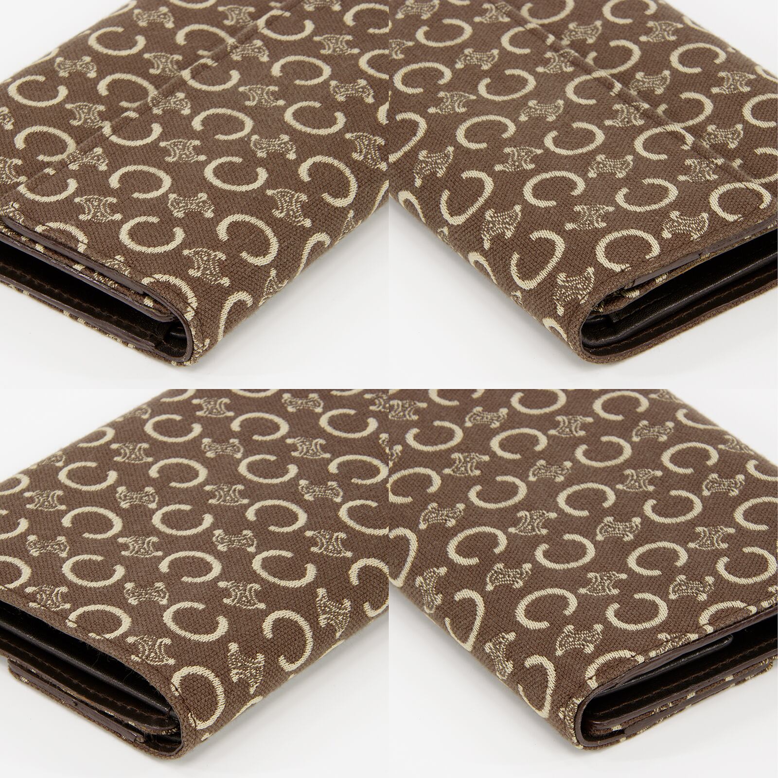 【本物・送料無料・外側極美品】セリーヌ・短財布・三つ折り財布(Cマカダム・人気・レア・珍しい・茶色・ブラウン・女性・D132)