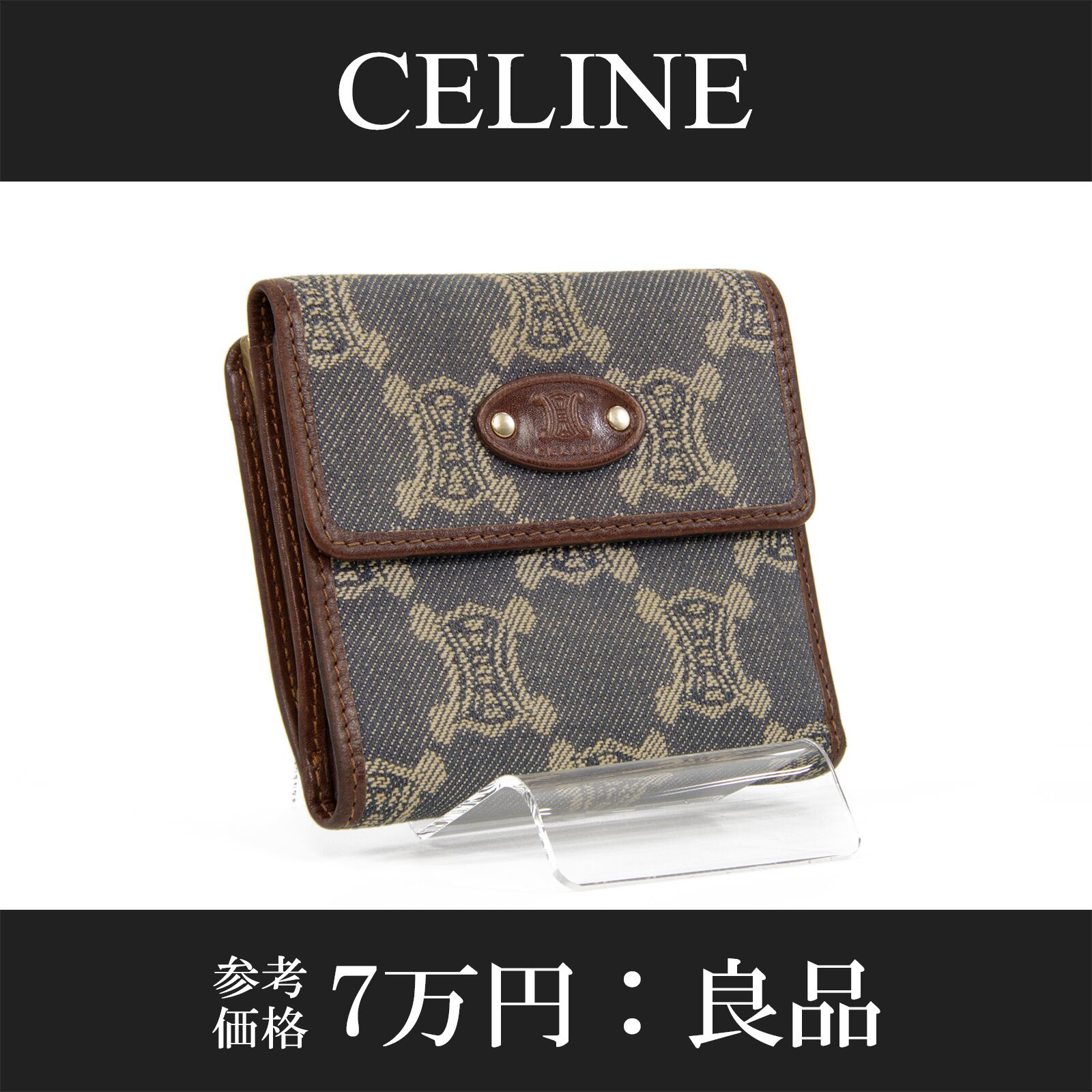 【本物・送料無料・良品】セリーヌ・短財布・三つ折り財布(パリマカダム・人気・デニム・女性・メンズ・男性・コンパクト・C145)
