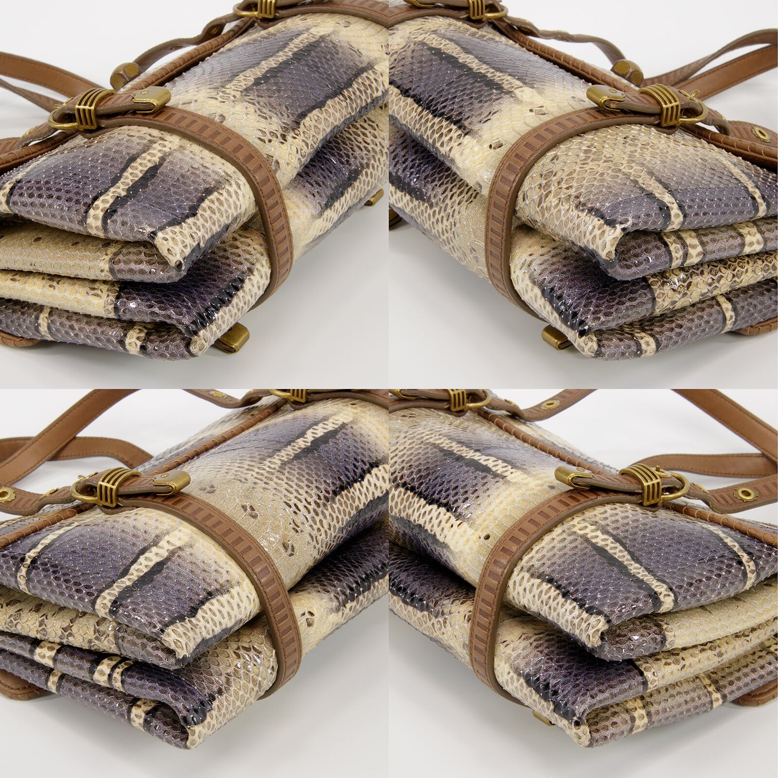 ベーシックなフォルムとエッジが効いた最高級パイソンレザーが、美と機能性を兼ね備えたボッテガらしさを感じさせる逸品。一目でハイブランドとわかる圧倒的存在感がございます。