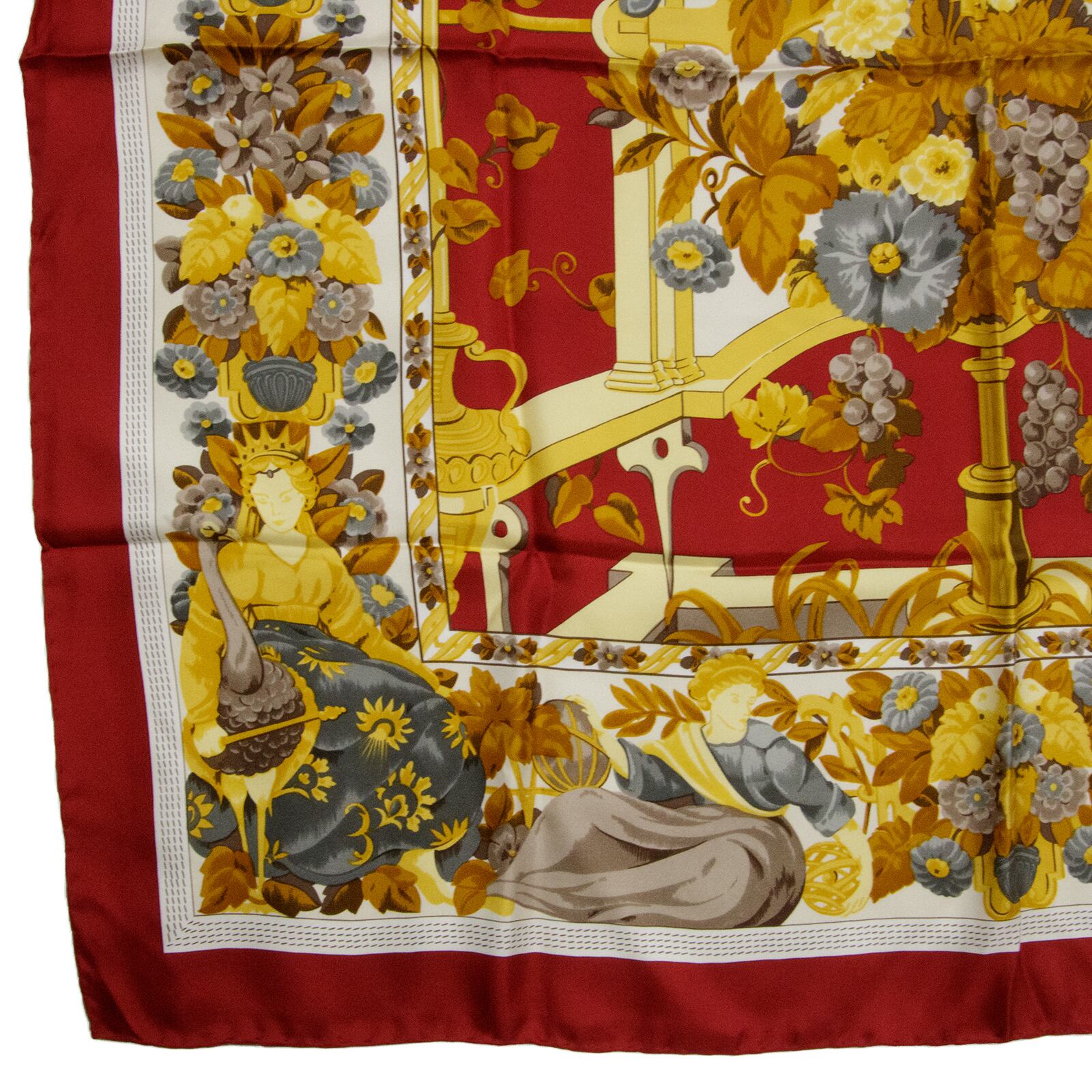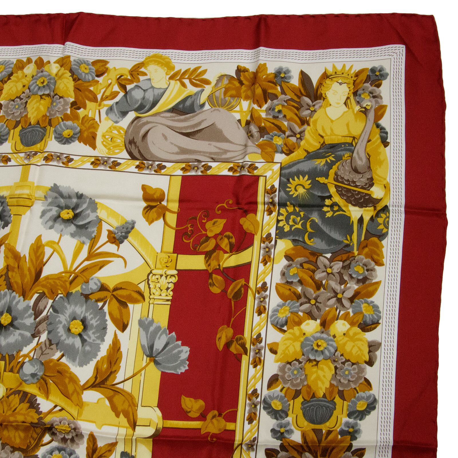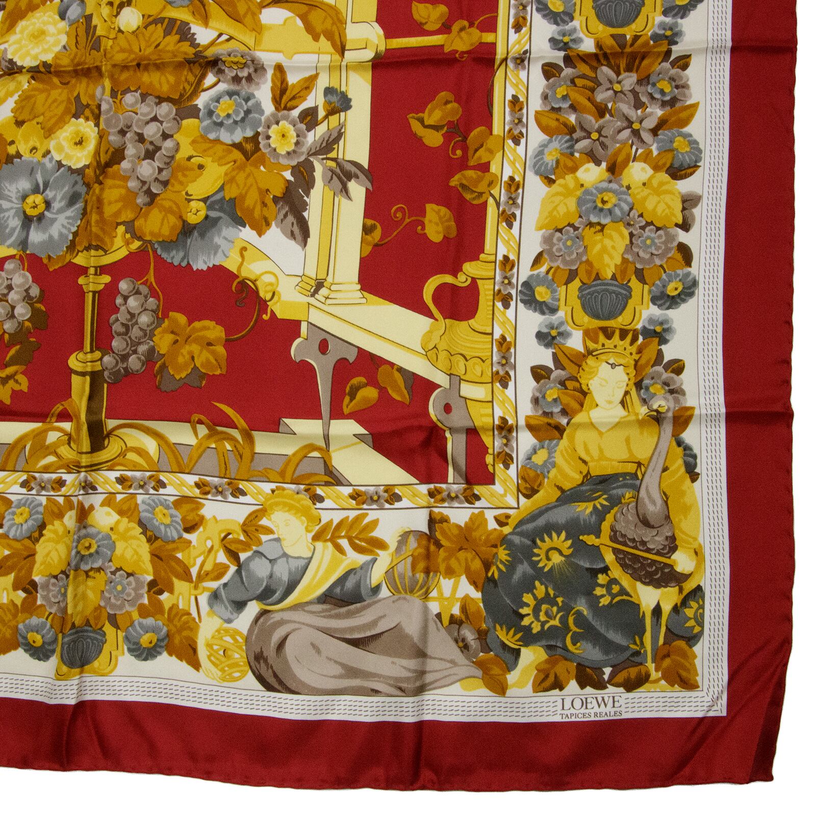 【本物・送料無料・新品同様】ロエベ・大判スカーフ(TAPICES REALES 王室のタペストリー・人気・綺麗・赤・ゴールド・茶色・X027)