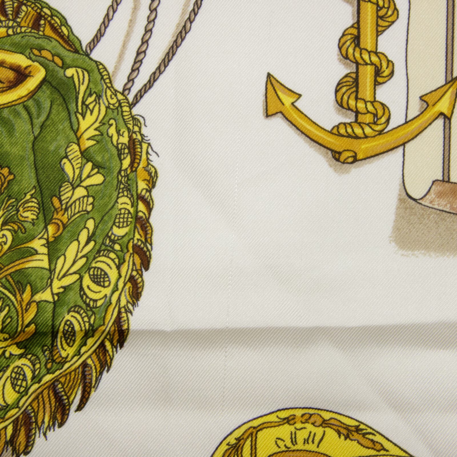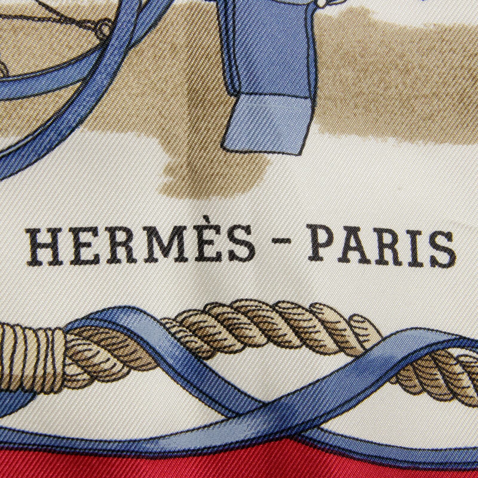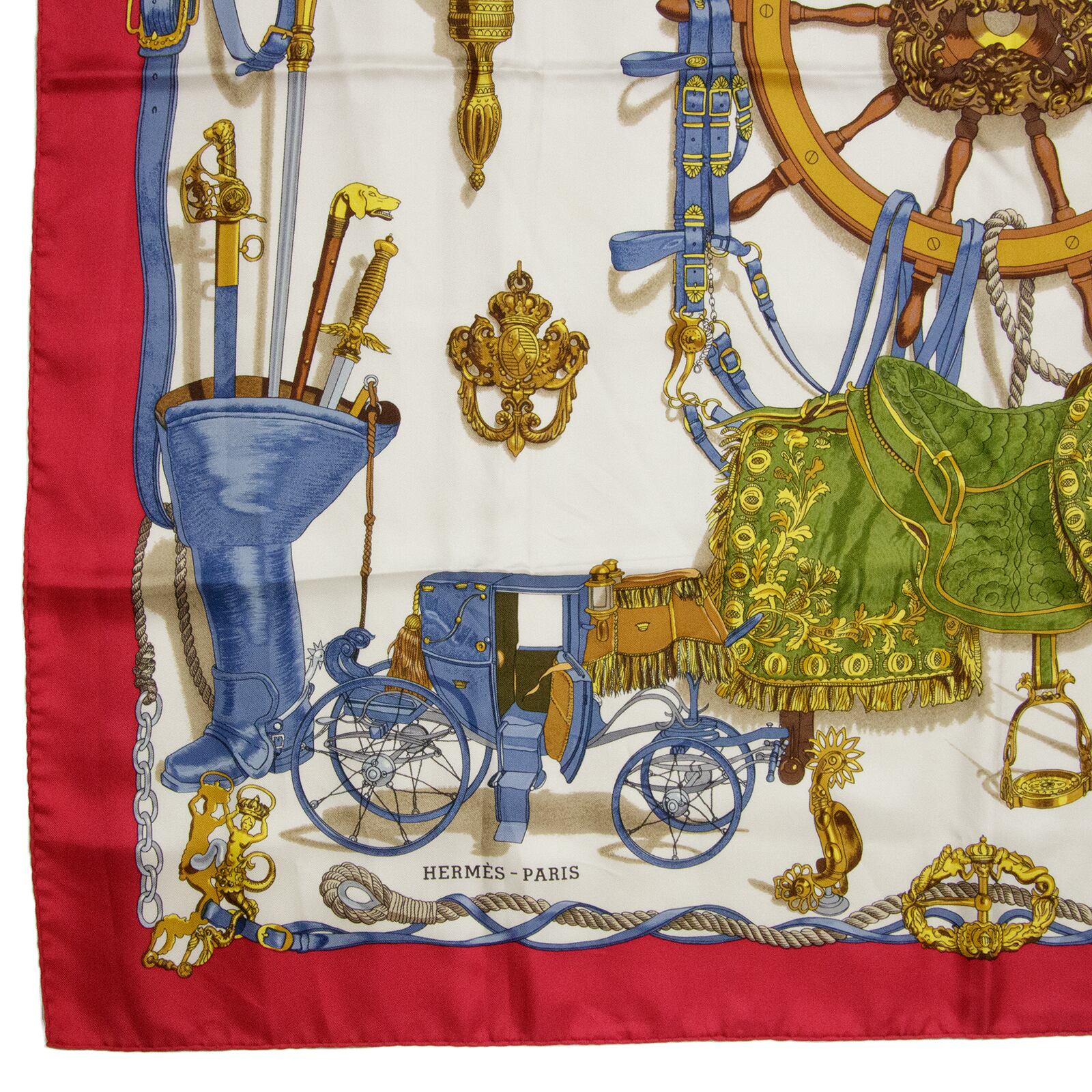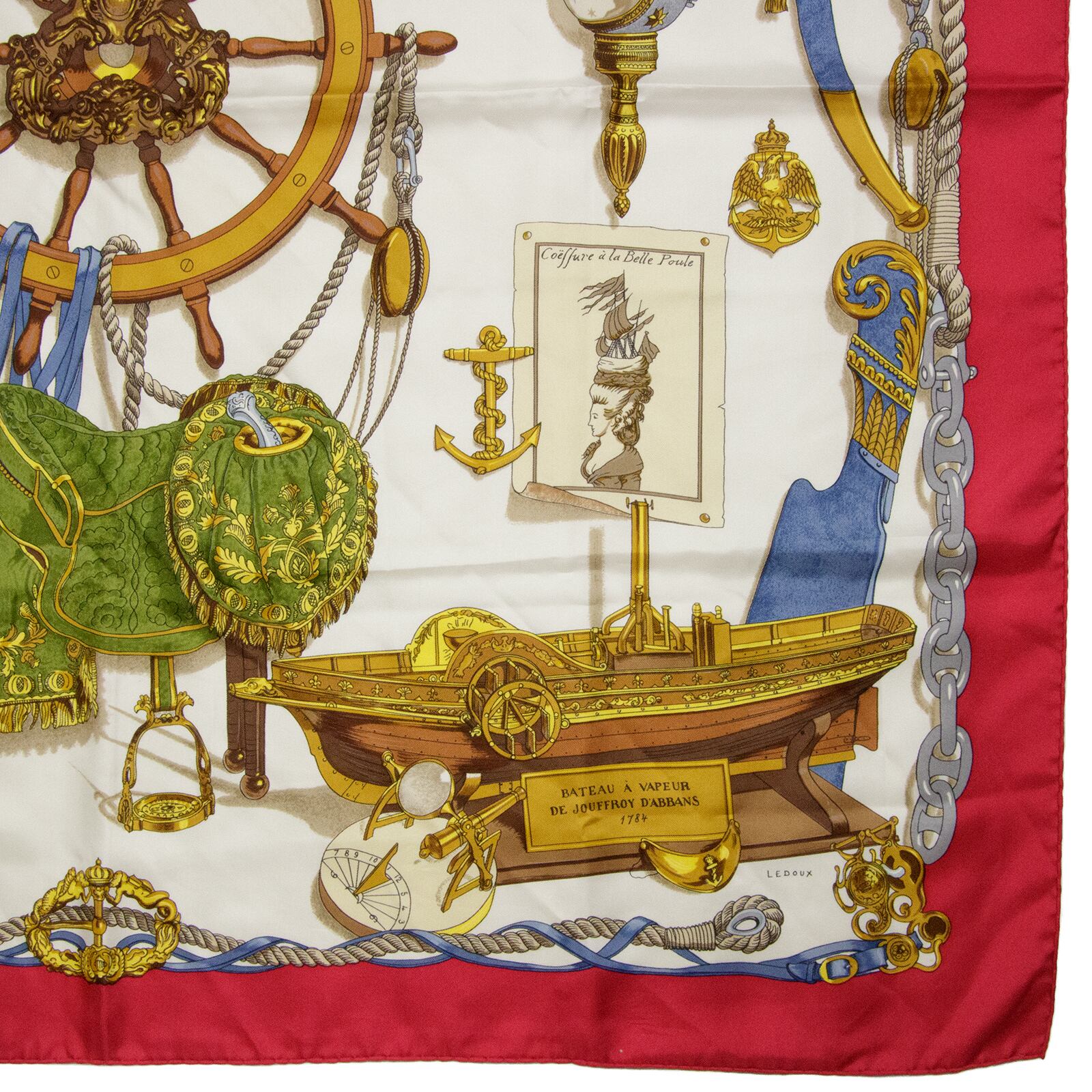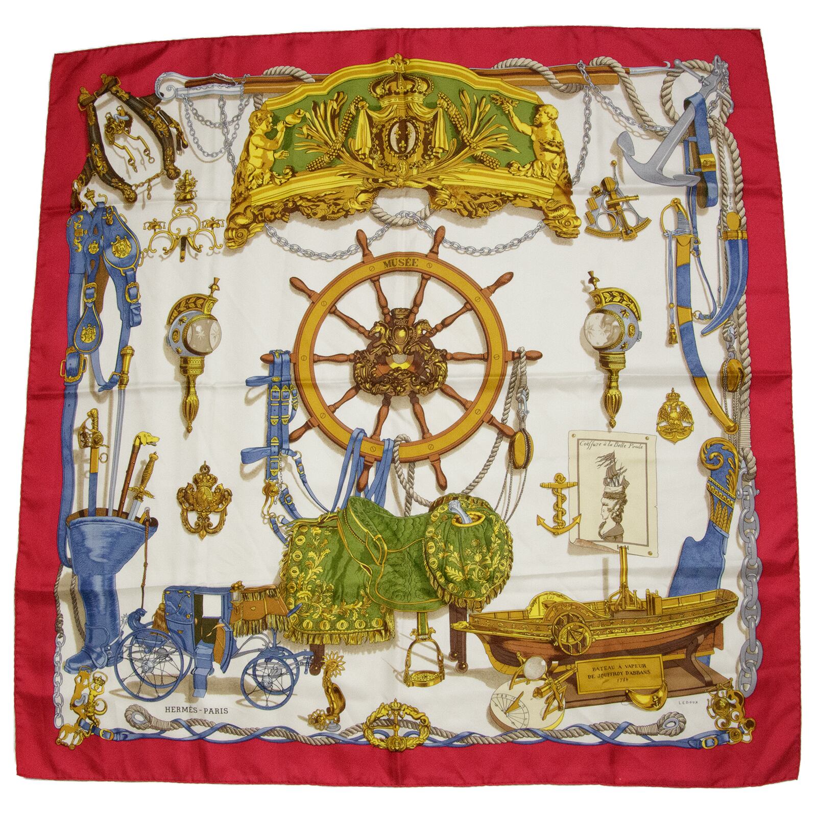 【本物・送料無料・良品】エルメス・大判スカーフ(カレ90・DABBANS 1784 蒸気船・白・赤・レッド・ゴールド・舵・美術館・X030)