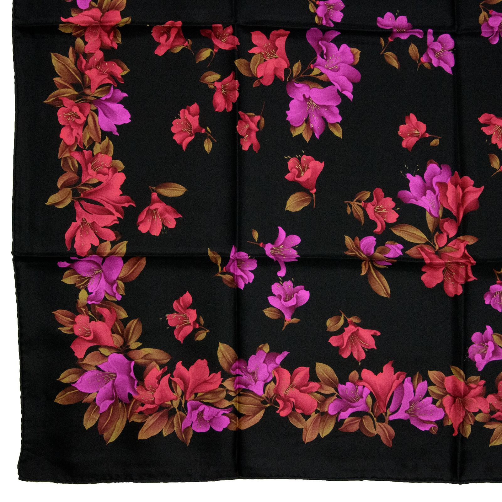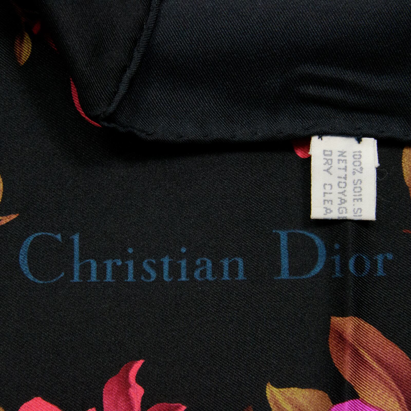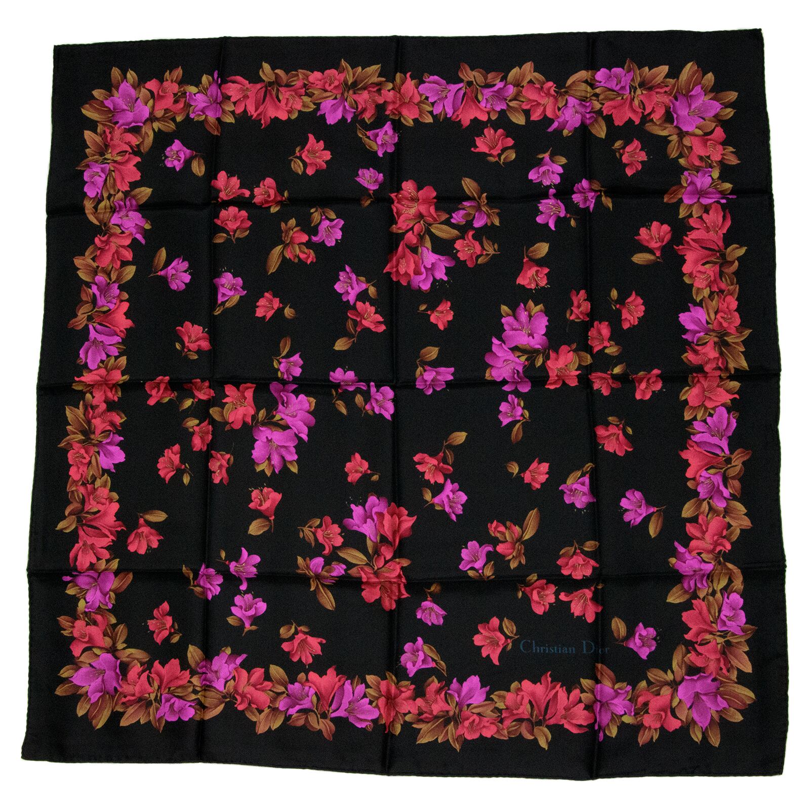 【本物・送料無料・新品同様】ディオール・小判スカーフ(シルク・綺麗・黒・ブラック・赤・紫色・花・寒緋桜・レア・珍しい・X034)