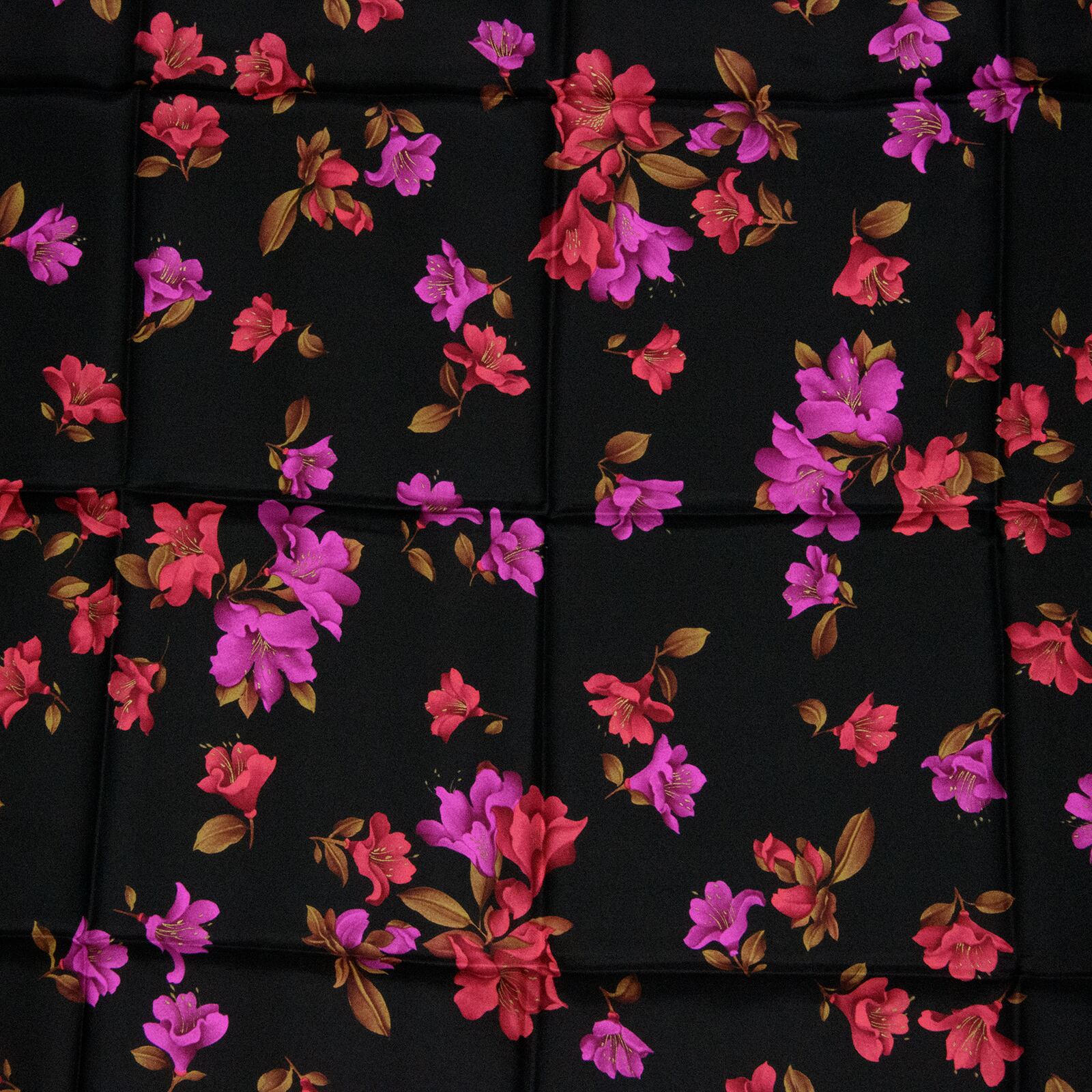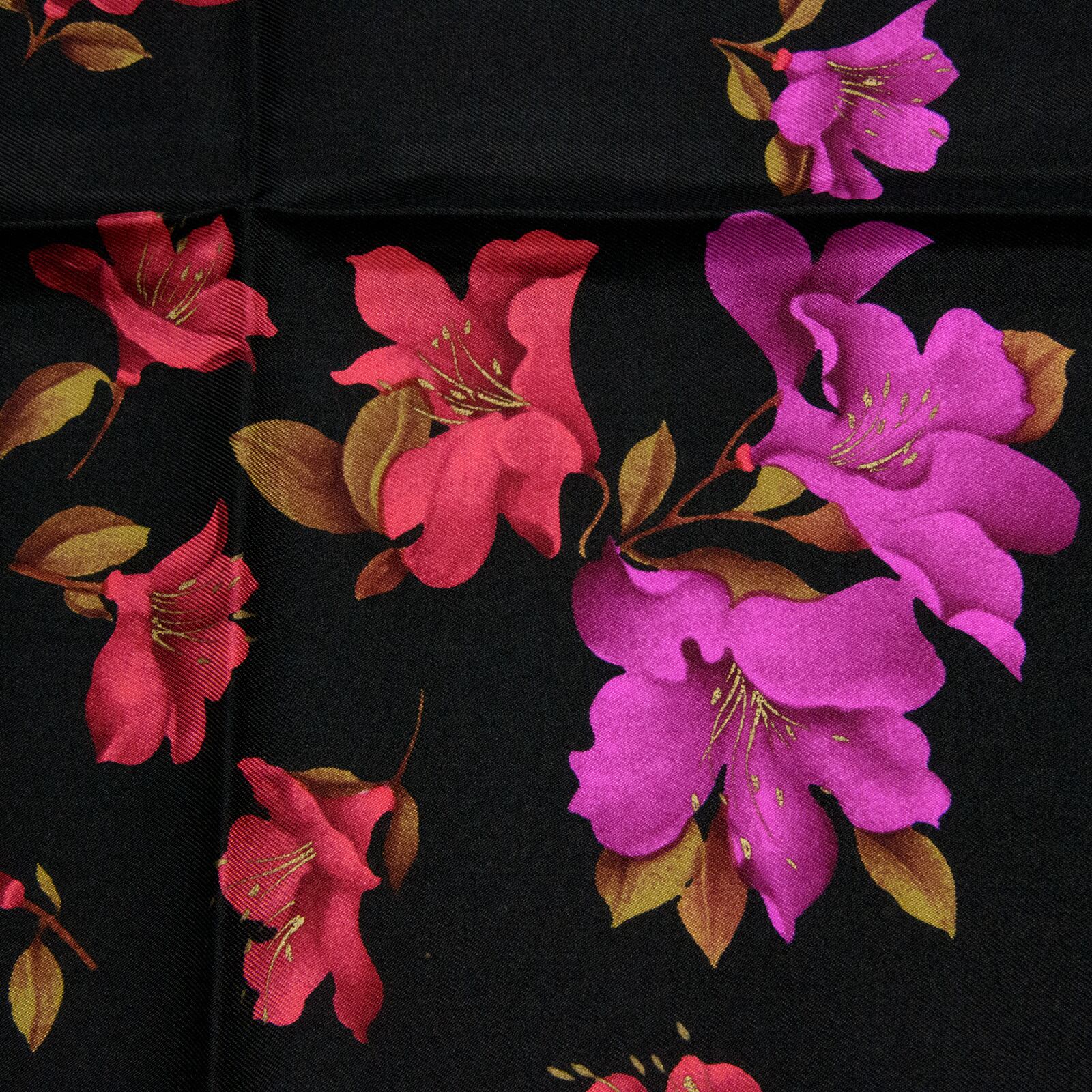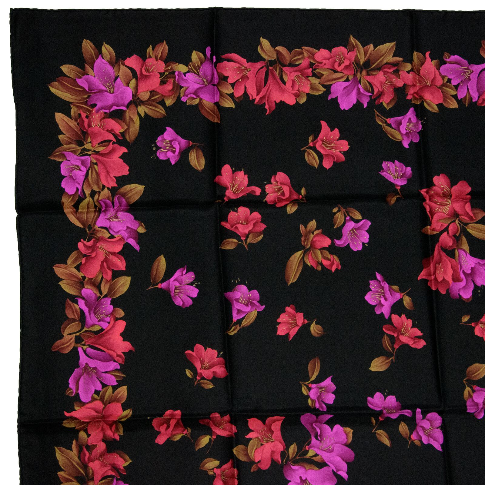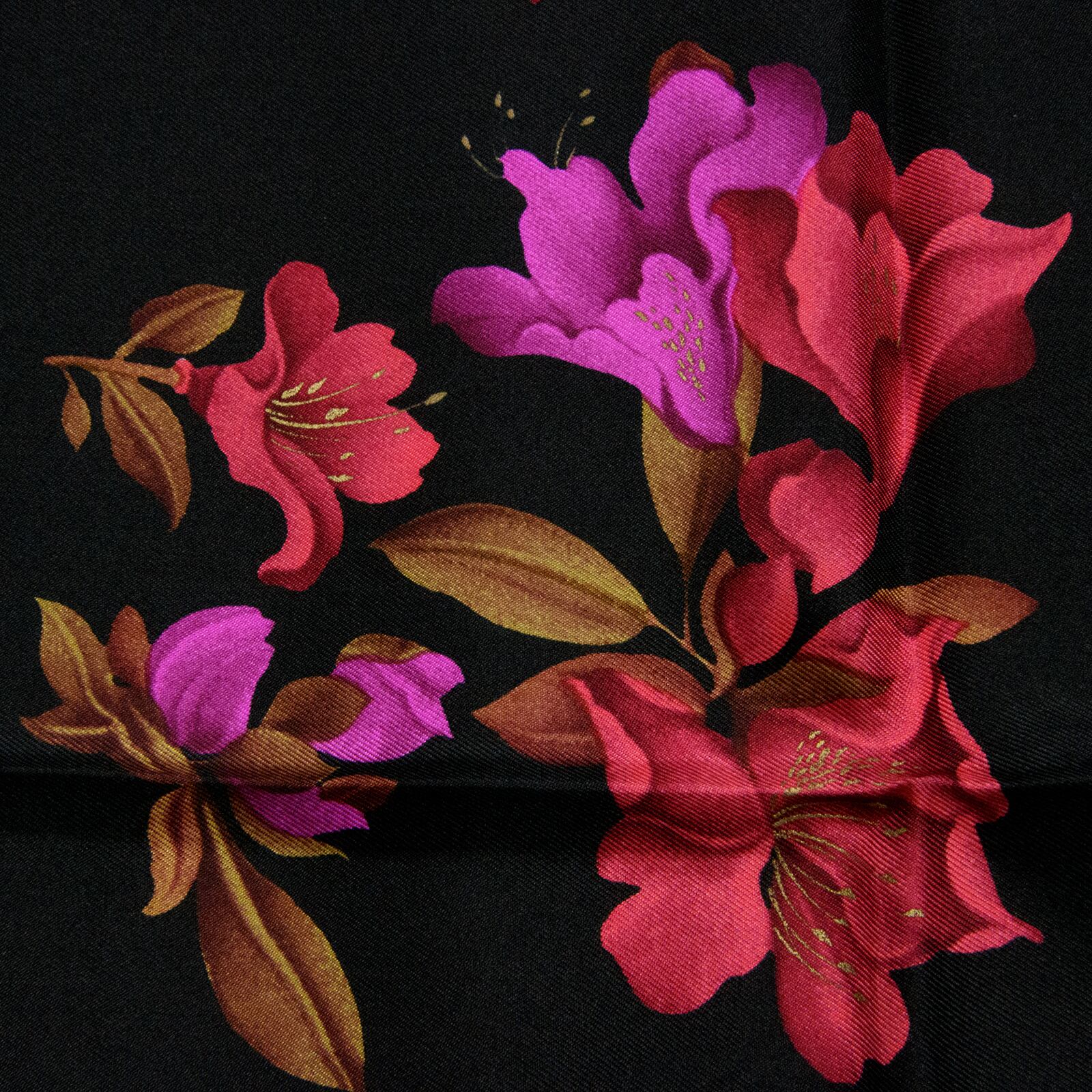 【本物・送料無料・新品同様】ディオール・小判スカーフ(シルク・綺麗・黒・ブラック・赤・紫色・花・寒緋桜・レア・珍しい・X034)
