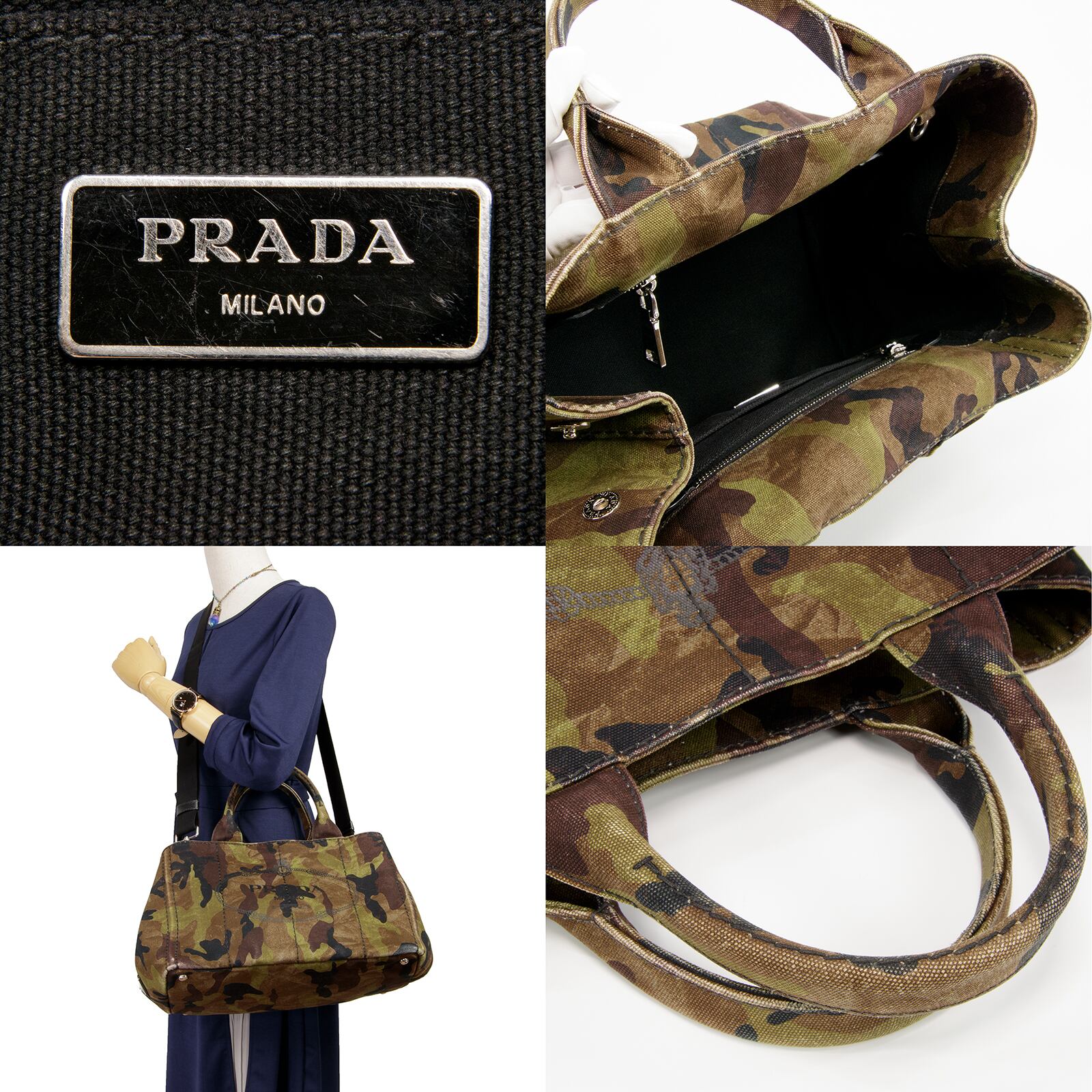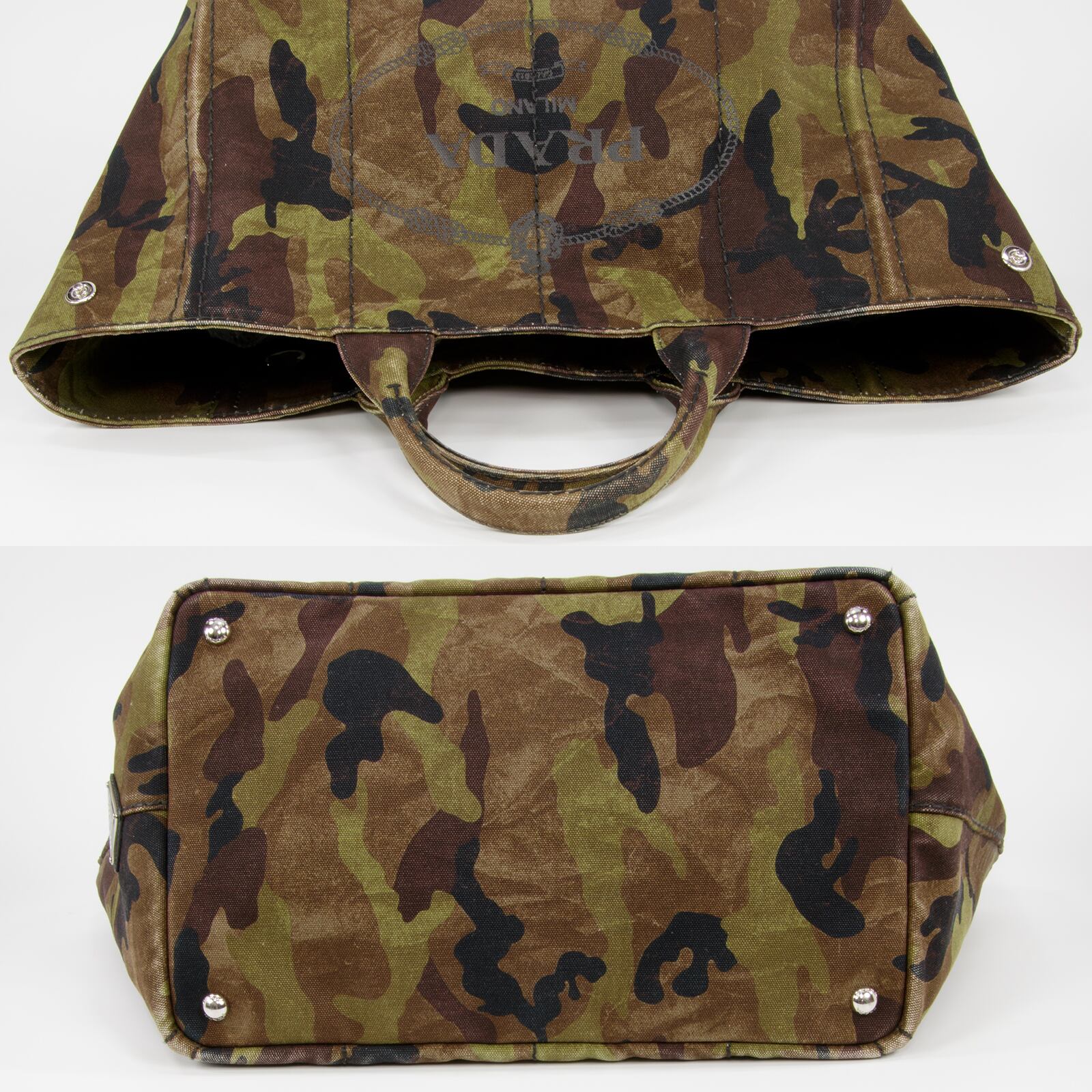 プラダの迷彩柄(カモフラージュ・ミリタリー)は性別問わずお使いいただける、お財布やリュックでも大人気のデザインで、カナパでは希少なモデルで、通常のカナパより一目でプラダとわかる圧倒的存在感がございます。