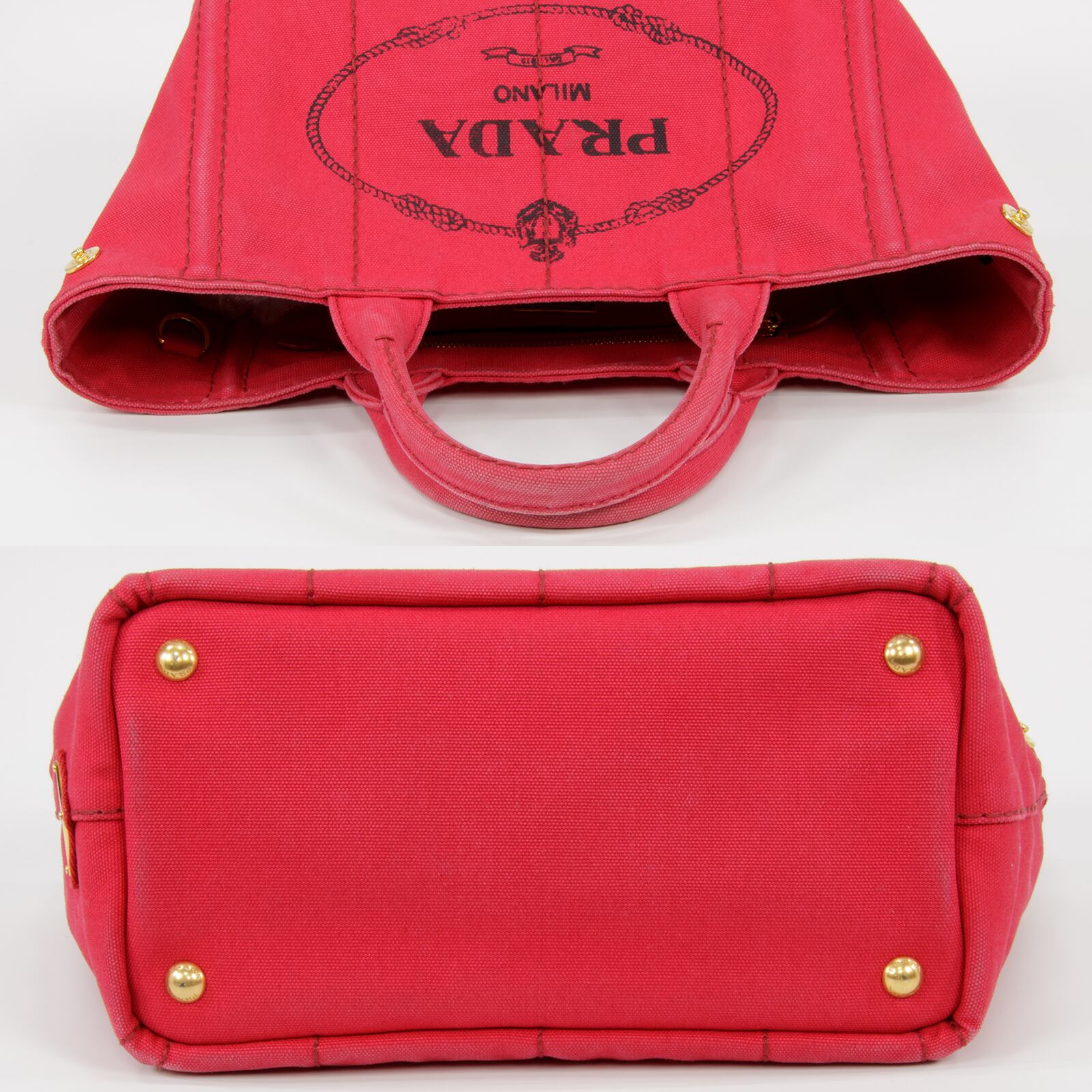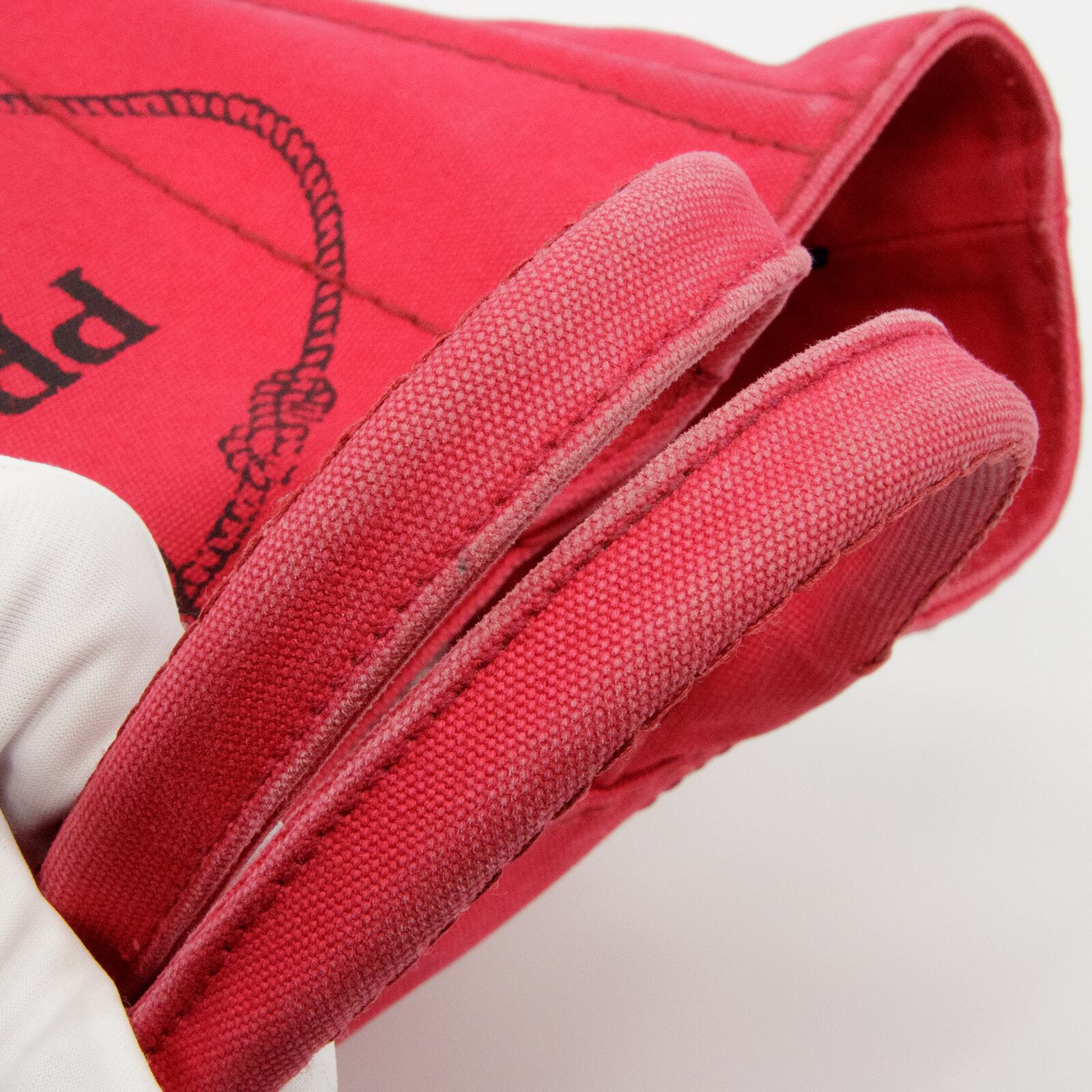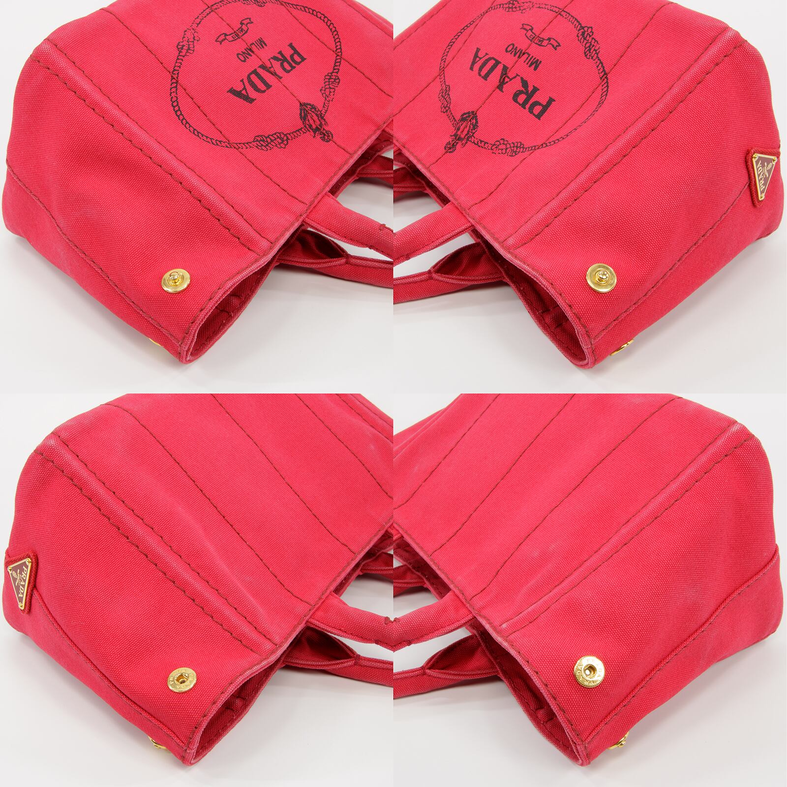 カナパ(SSサイズ・MINI)は女性に大人気のサイズで、前面の「PRADA」の特大ロゴがレッドのキャンバスによって際立っており、一目でプラダとわかる圧倒的存在感にうっとりさせられます。