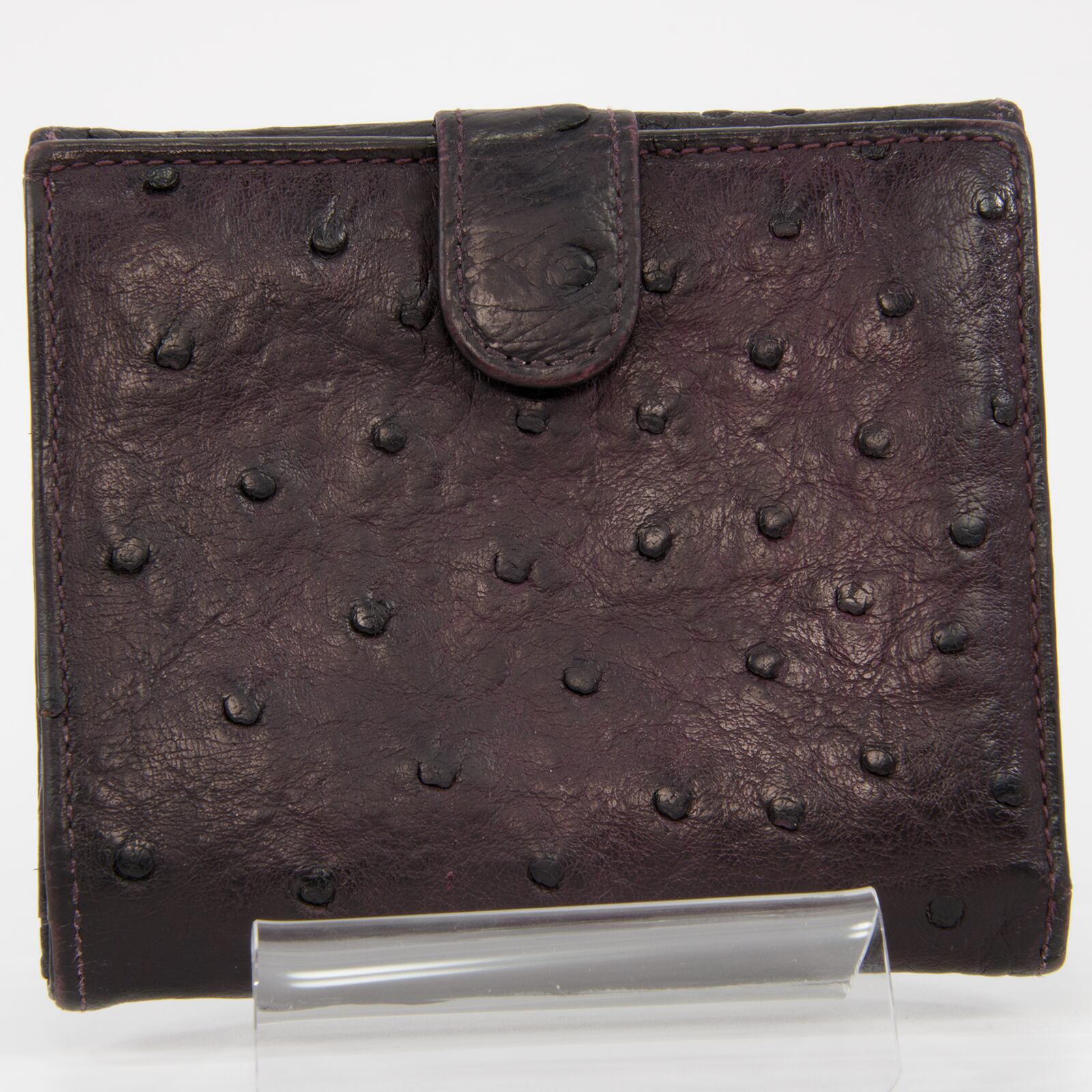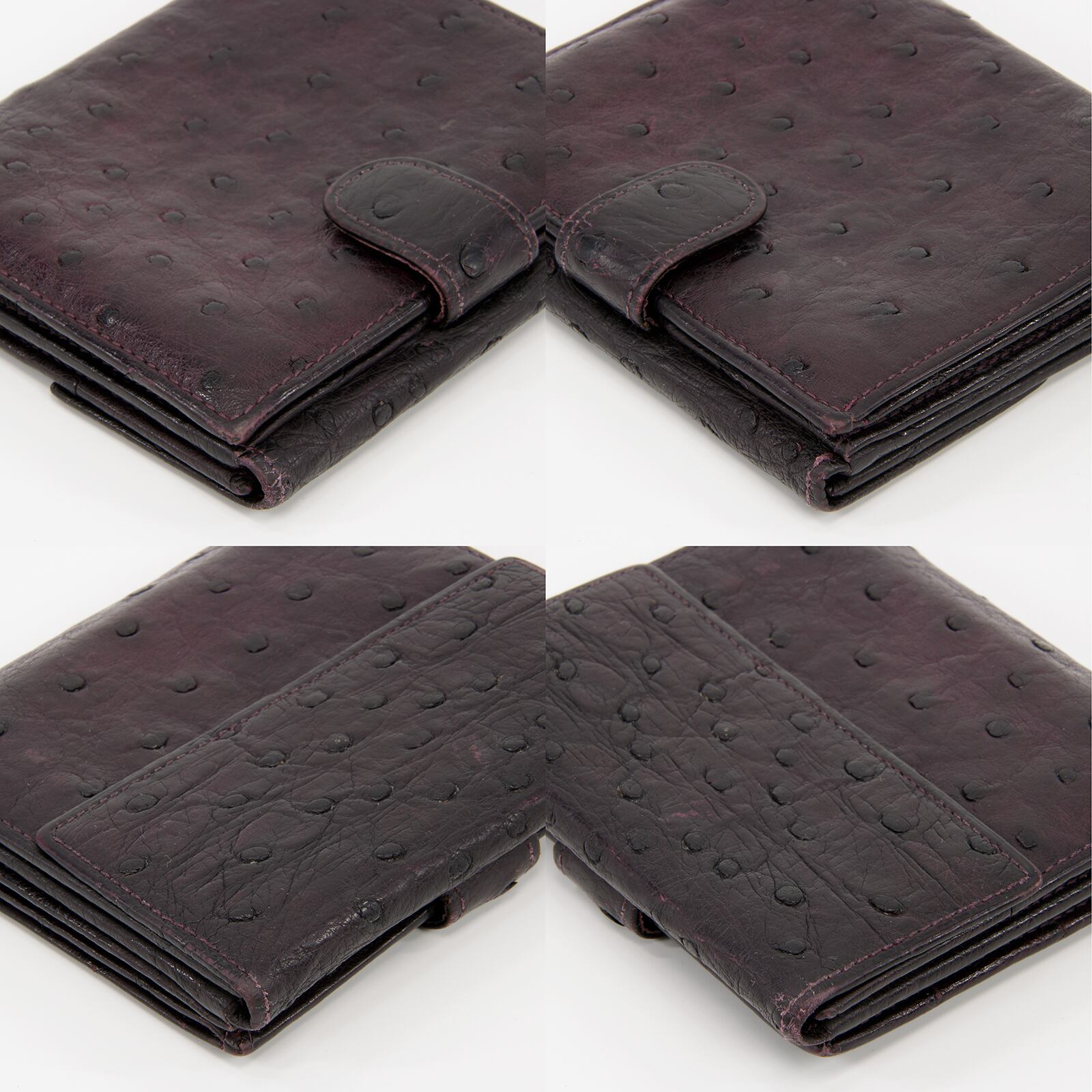 【本物・送料無料・良品】ロエベ・短財布・二つ折り財布(オーストリッチ・高級・黒・ブラック・紫・パープル・メンズ・男性・C150)