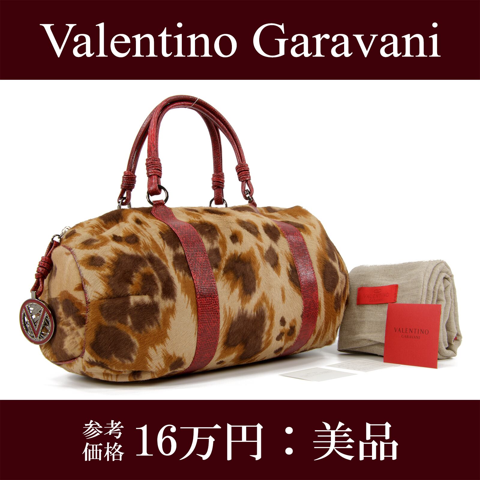 【本物・送料無料・美品】ヴァレンティノ・ガラヴァーニ・ハンドバッグ(ハラコ・綺麗・最高級・レア・赤・レッド・バック・I106)