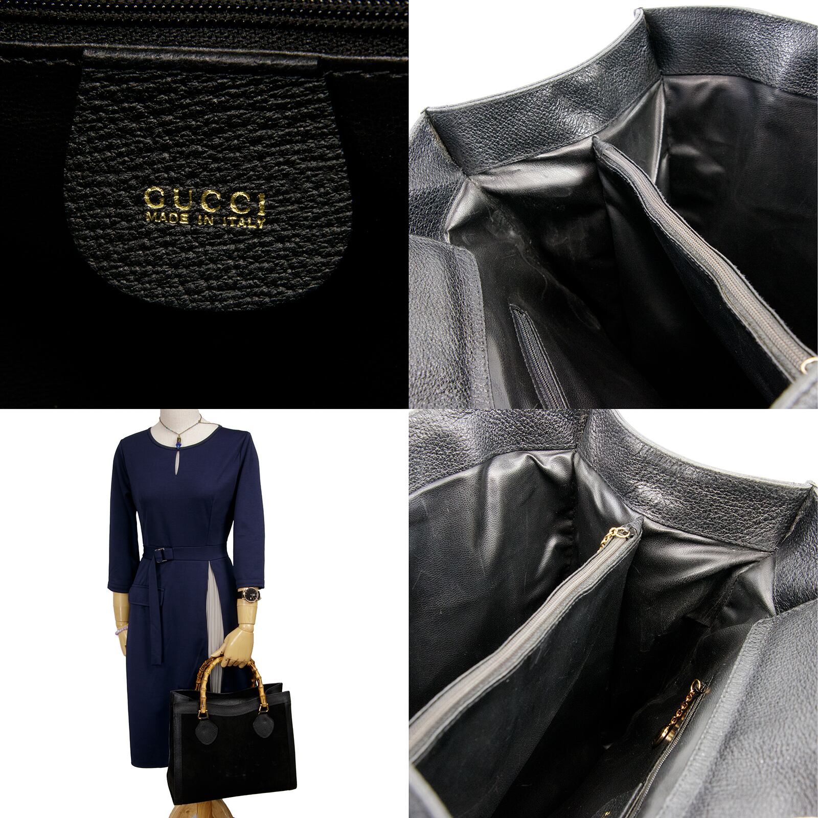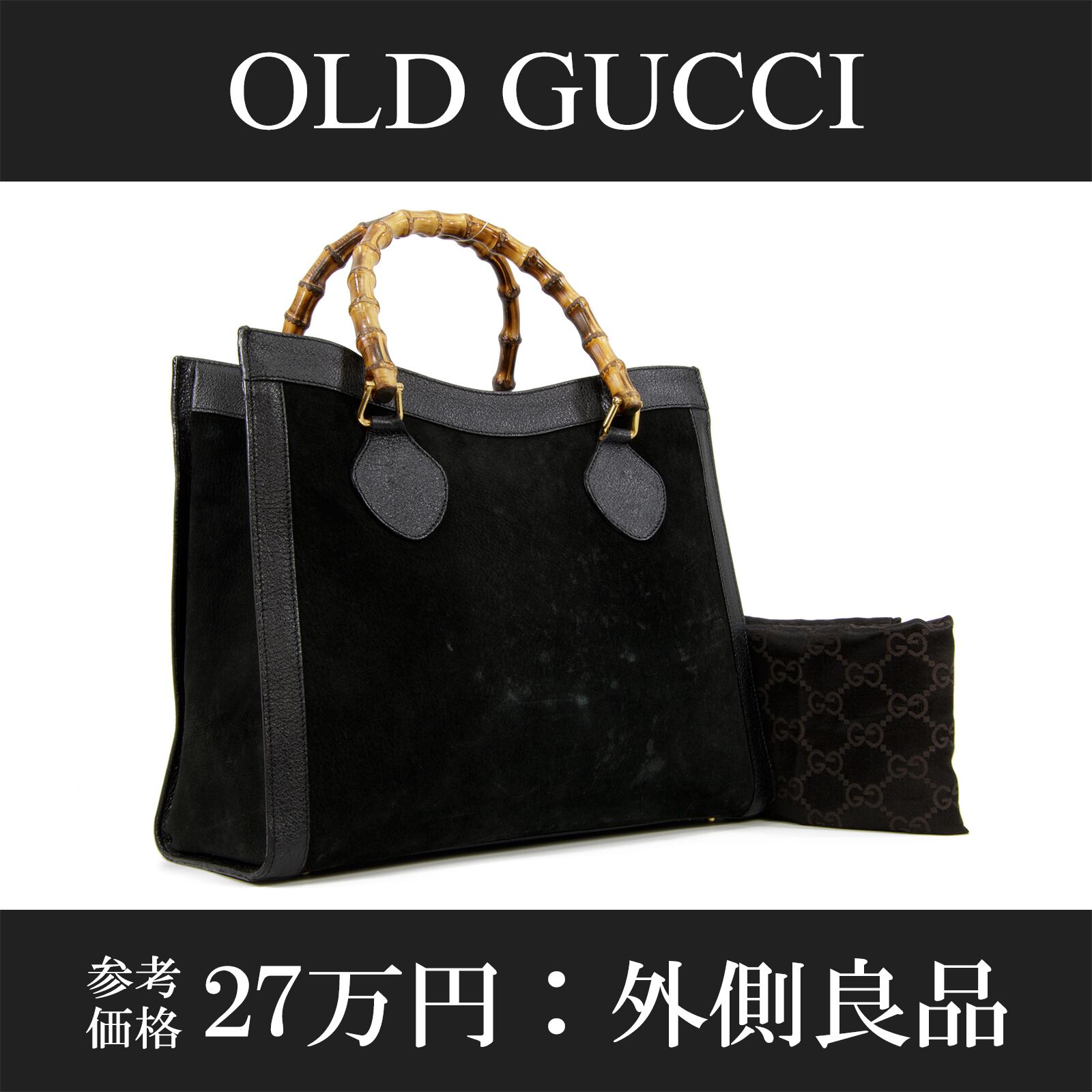 【本物・送料無料・外側良品】オールドグッチ・ハンドバッグ(バンブー・人気・レア・スエード・黒・ブラック・鞄・バック・B187)