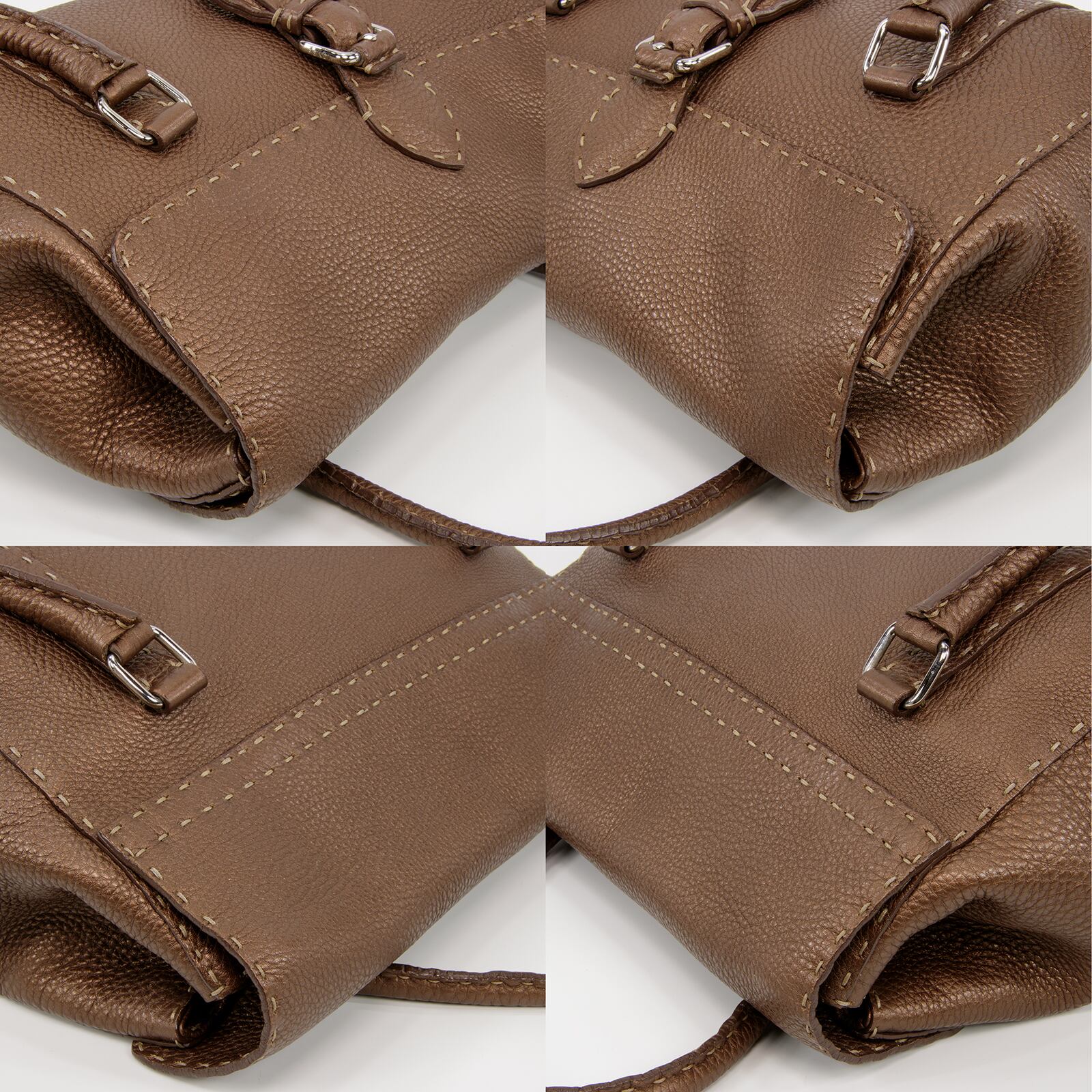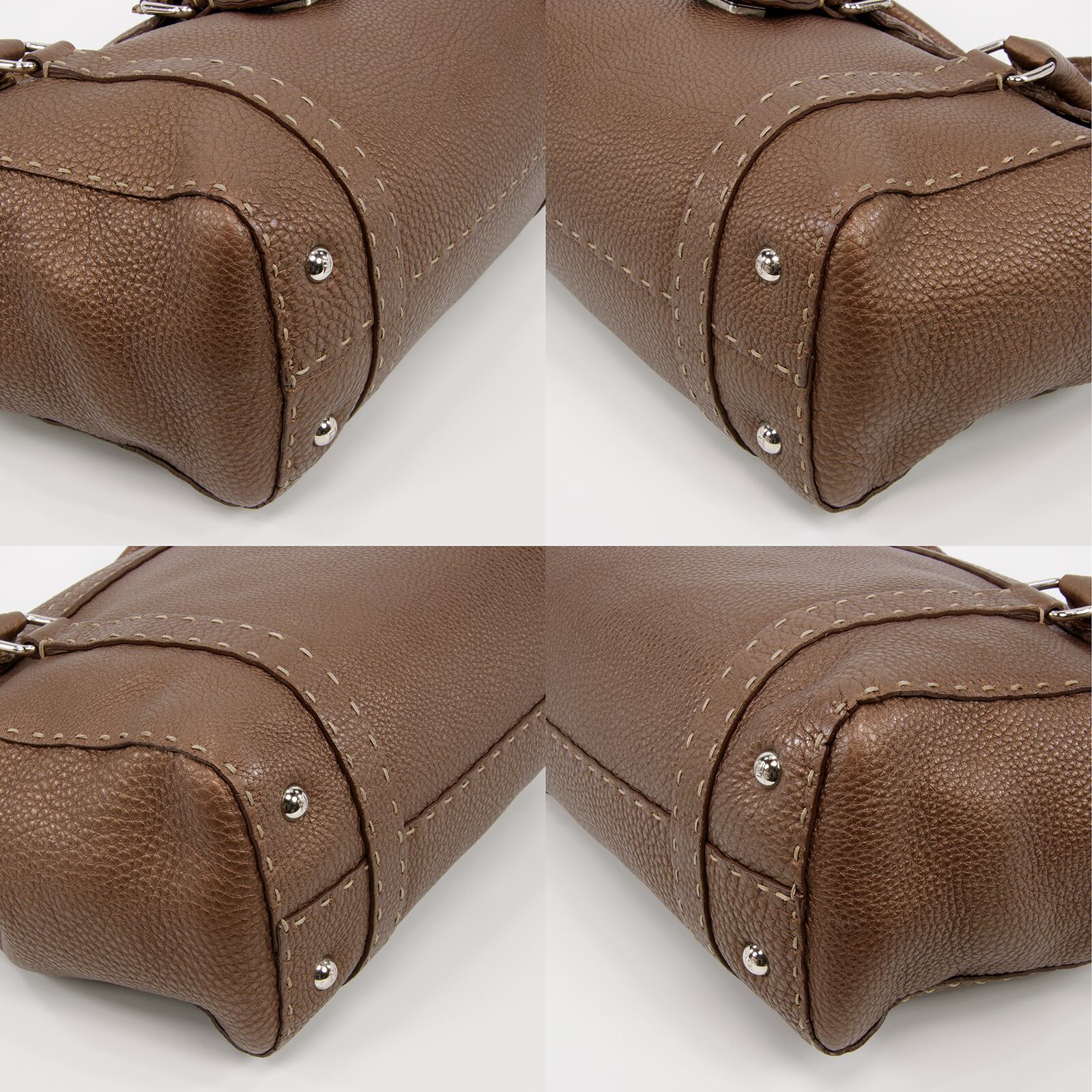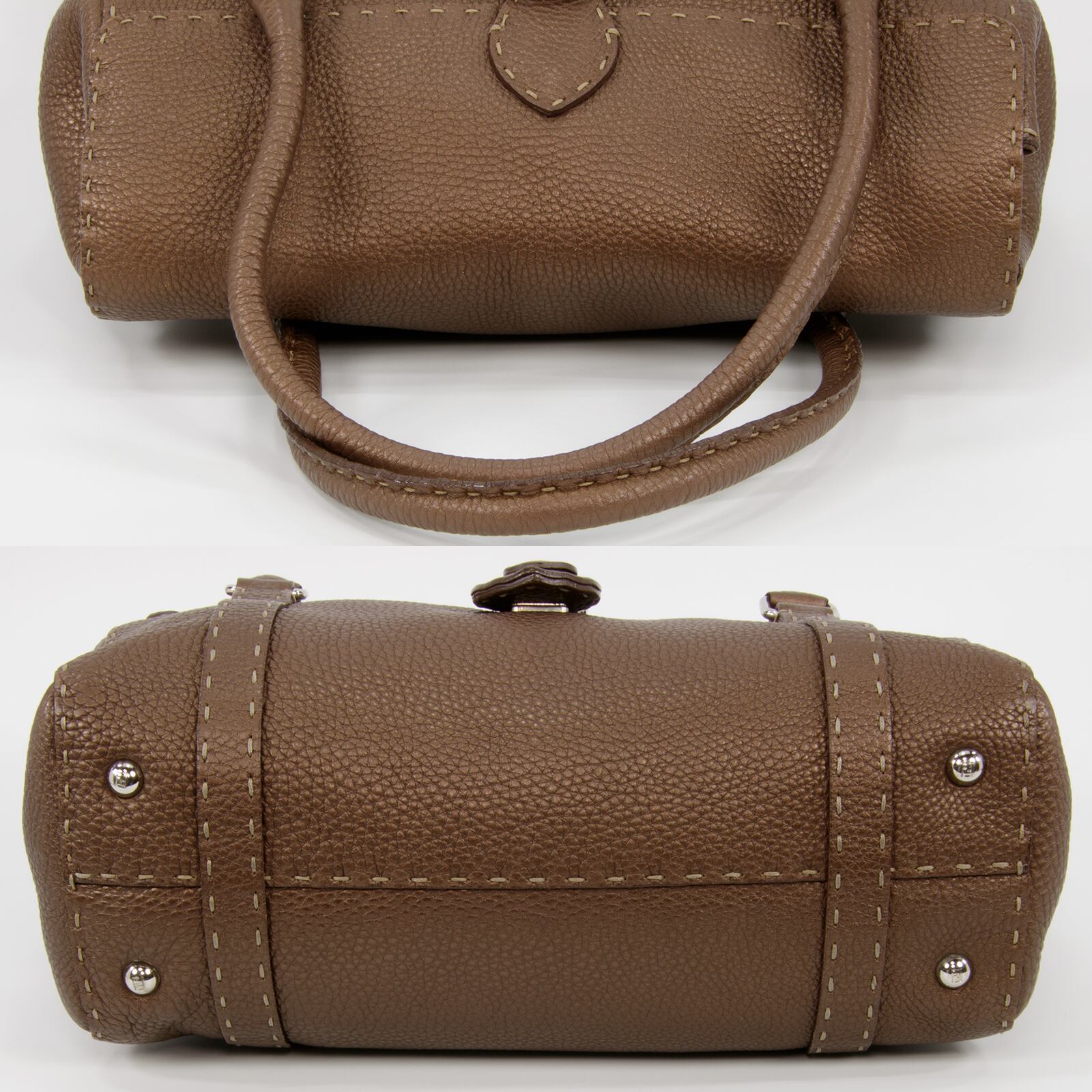 【本物・送料無料・外側美品】フェンディ・ハンドバッグ(リンダ・セレリア・人気・高級・レア・珍しい・メタリックブラウン・I112)