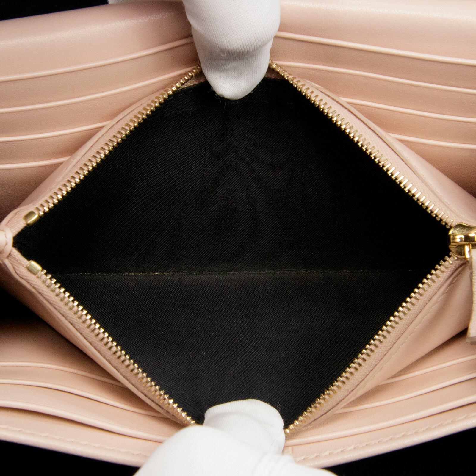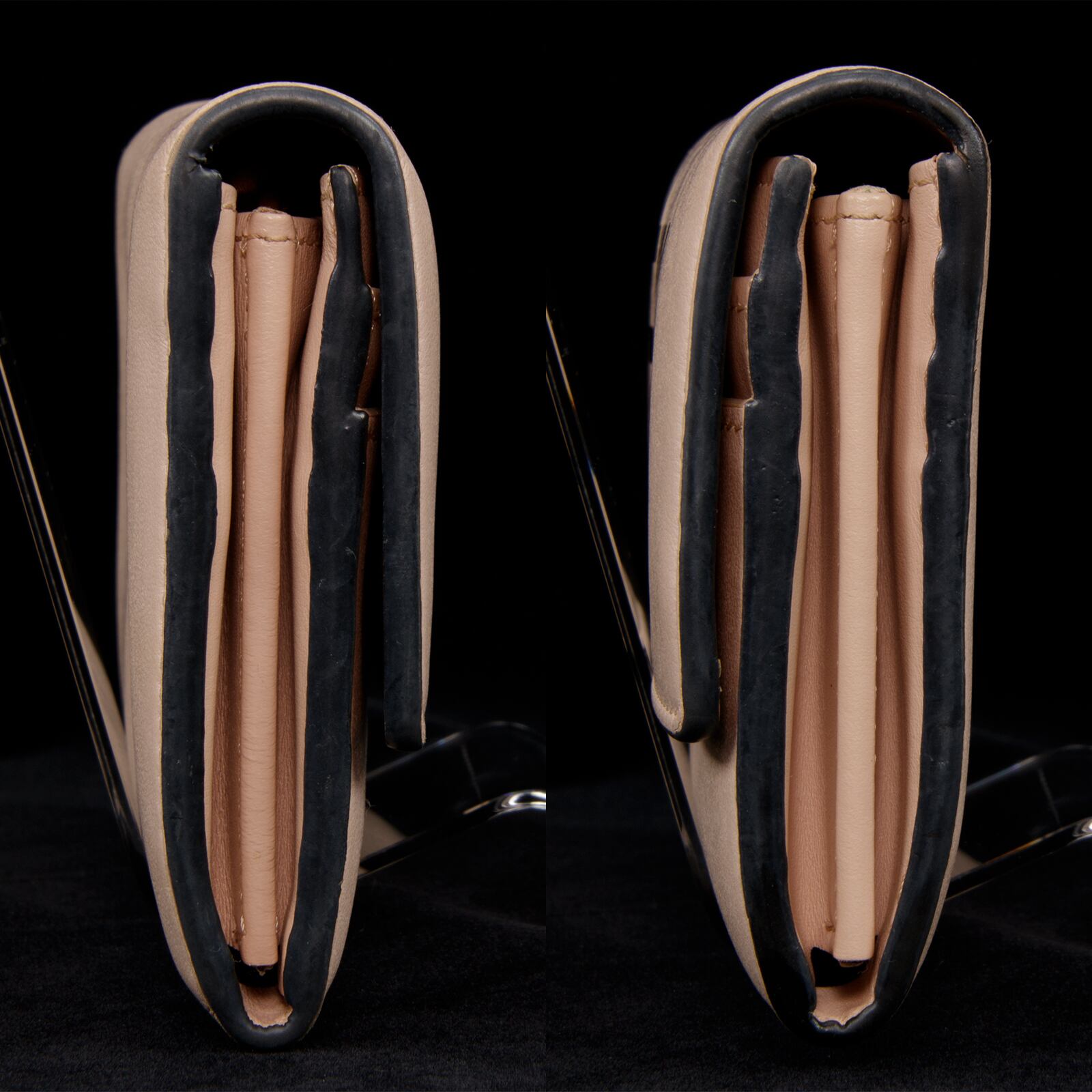 しっとりと柔らかな手触りの最高級カーフがあしらわれており、スリムでありながら収納スペースが多い・物の出し入れがしやすいなど、使い心地の良さも素晴らしく、どのような場面でもお客様の洗練された美しさとセレブ感を引き立ててくれます。