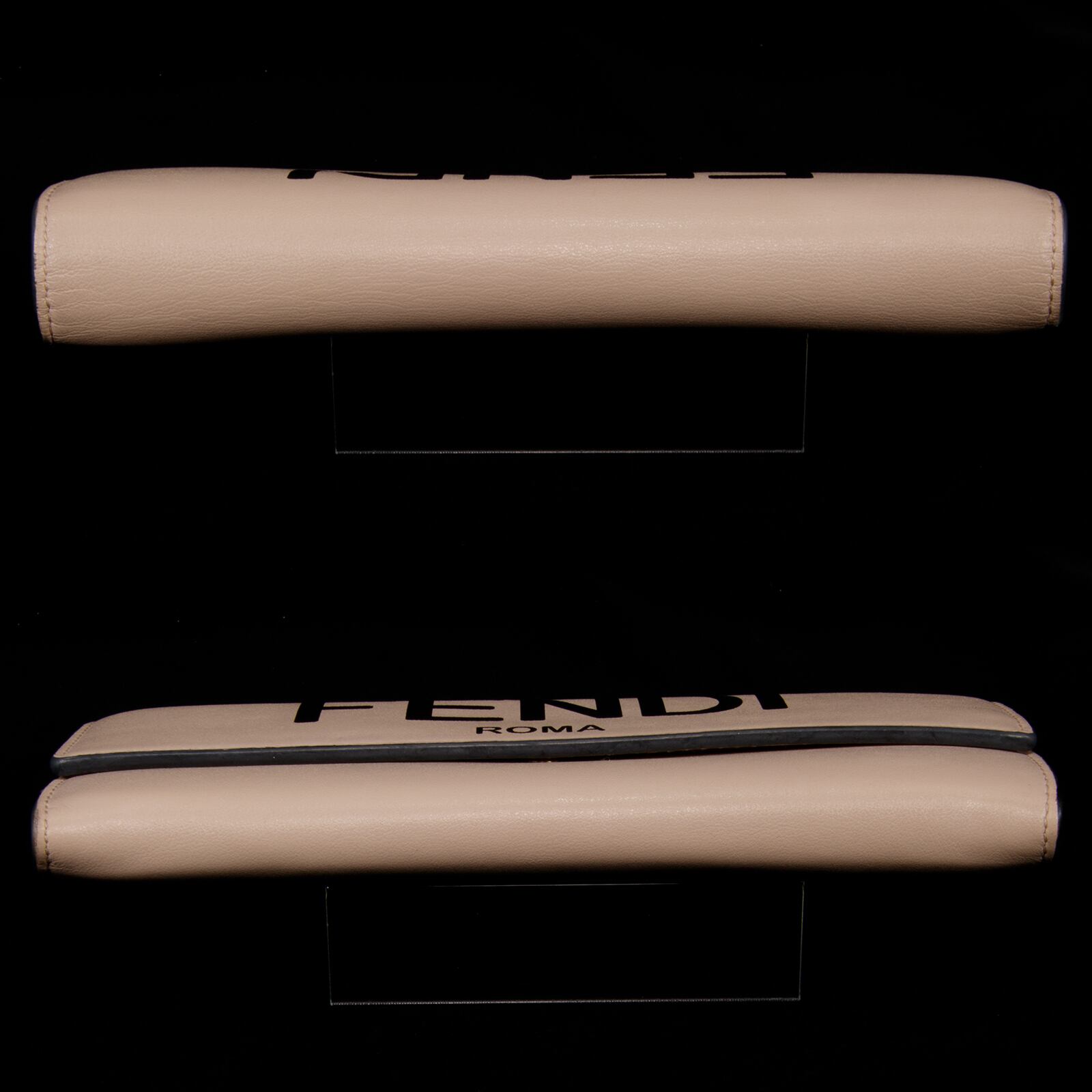 別のカラーは現在もFENDIで販売されているコンチネンタル財布で、前面の「FENDI ROMA」の特大ロゴが、一目でフェンディとわかる存在感を演出しており、全世界の有名人やセレブから絶大な人気を誇っております。