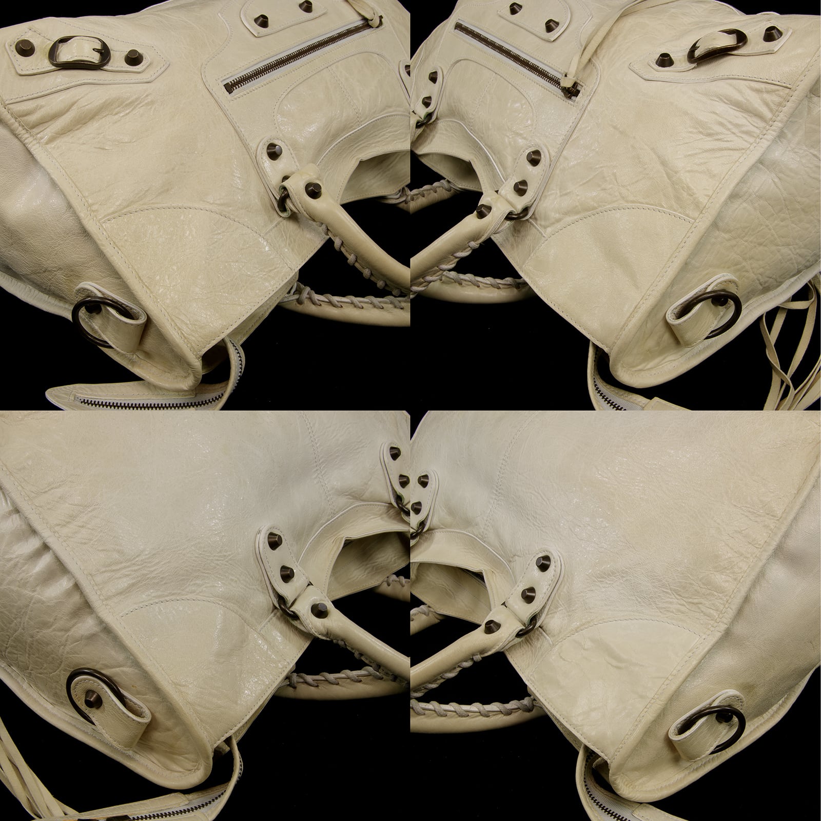 ザ・パートタイムは、定番ラインのザ・シティの横長バージョンで、フロントのファスナーポケット・レザーフリンジ・エッジ部分のベルトとスタッズが特徴で、一目でバレンシアガとわかる存在感がございます。