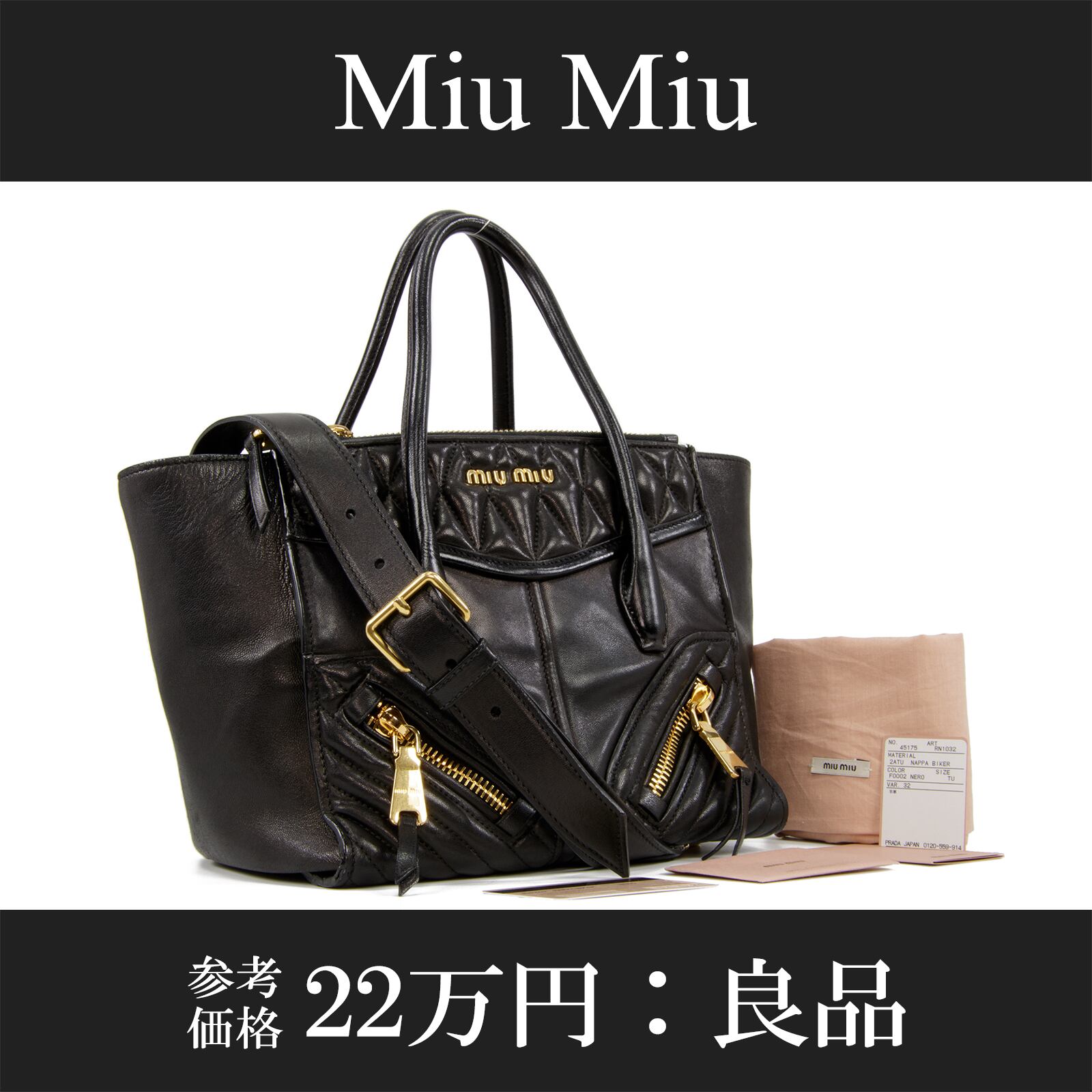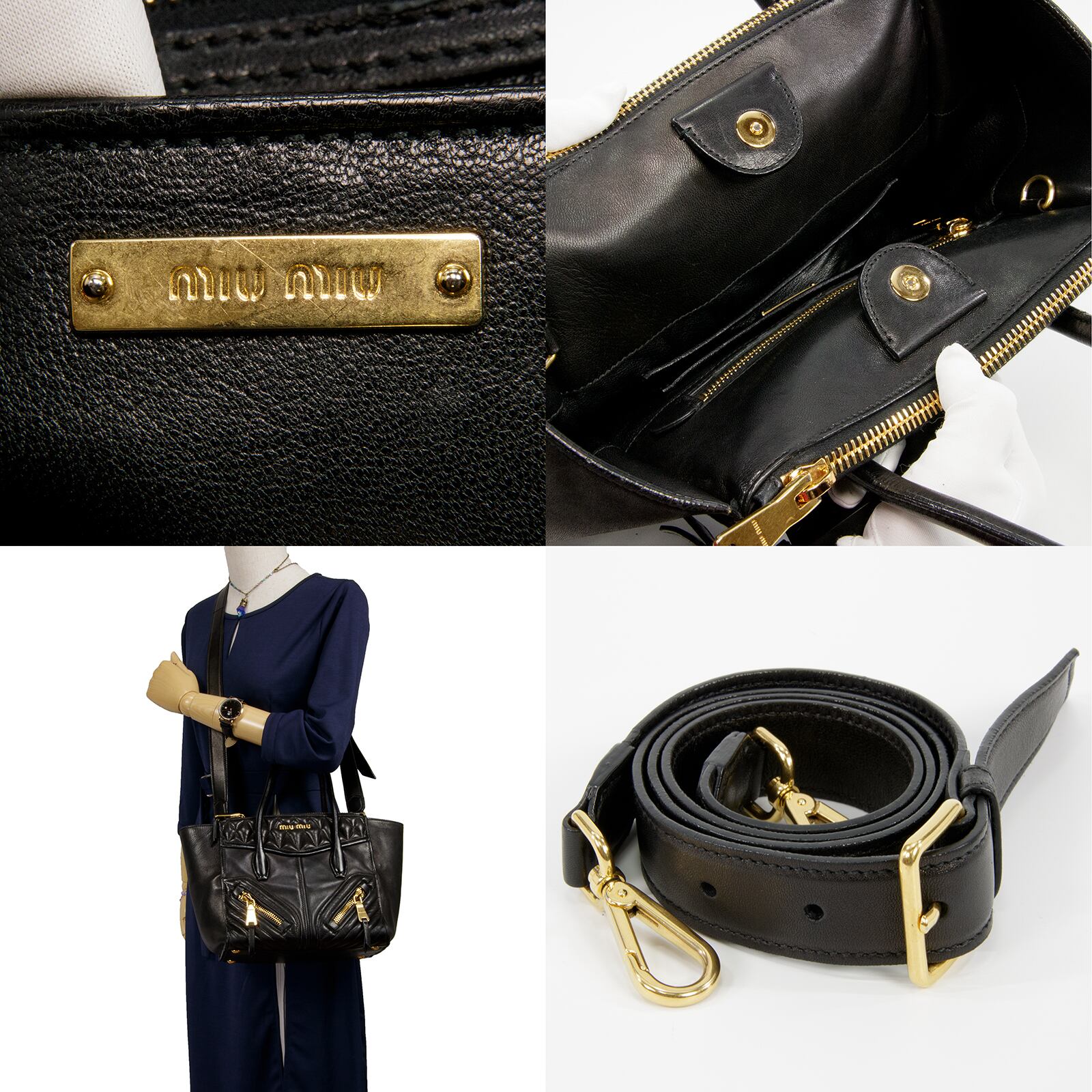 【本物・送料無料・良品】ミュウミュウ・2WAYショルダーバッグ(ナッパ バイカー・人気・斜め掛け・黒・ブラック・バック・L066)