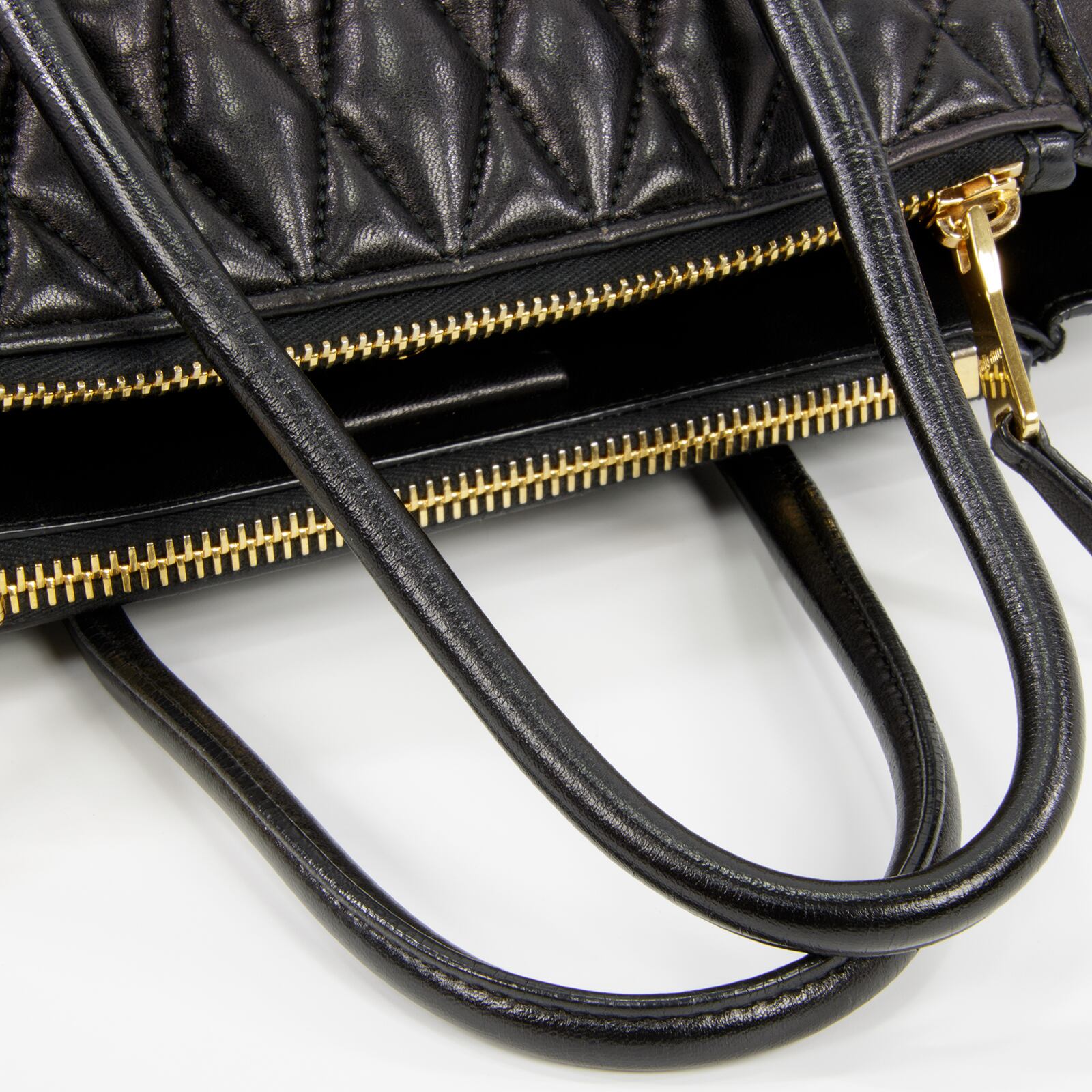 ファスナープルなどのゴールドカラーの金具がアクセントになっていて、一目でミュウミュウとわかる存在感もあり、丈夫で軽い・収納スペースが多い・斜め掛け可能など、使い心地の良さも素晴らしく、どのような場面でもお客様の洗練された美しさとセレブ感を引き立ててくれます。