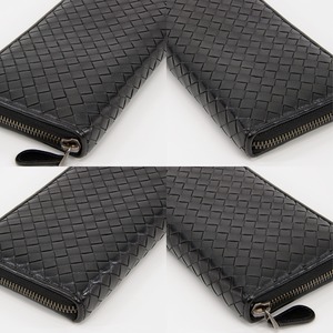 【本物・送料無料・外側極美品】ボッテガ・長財布・ラウンドファスナー(イントレチャート・女性・メンズ・黒・ブラック・D143)