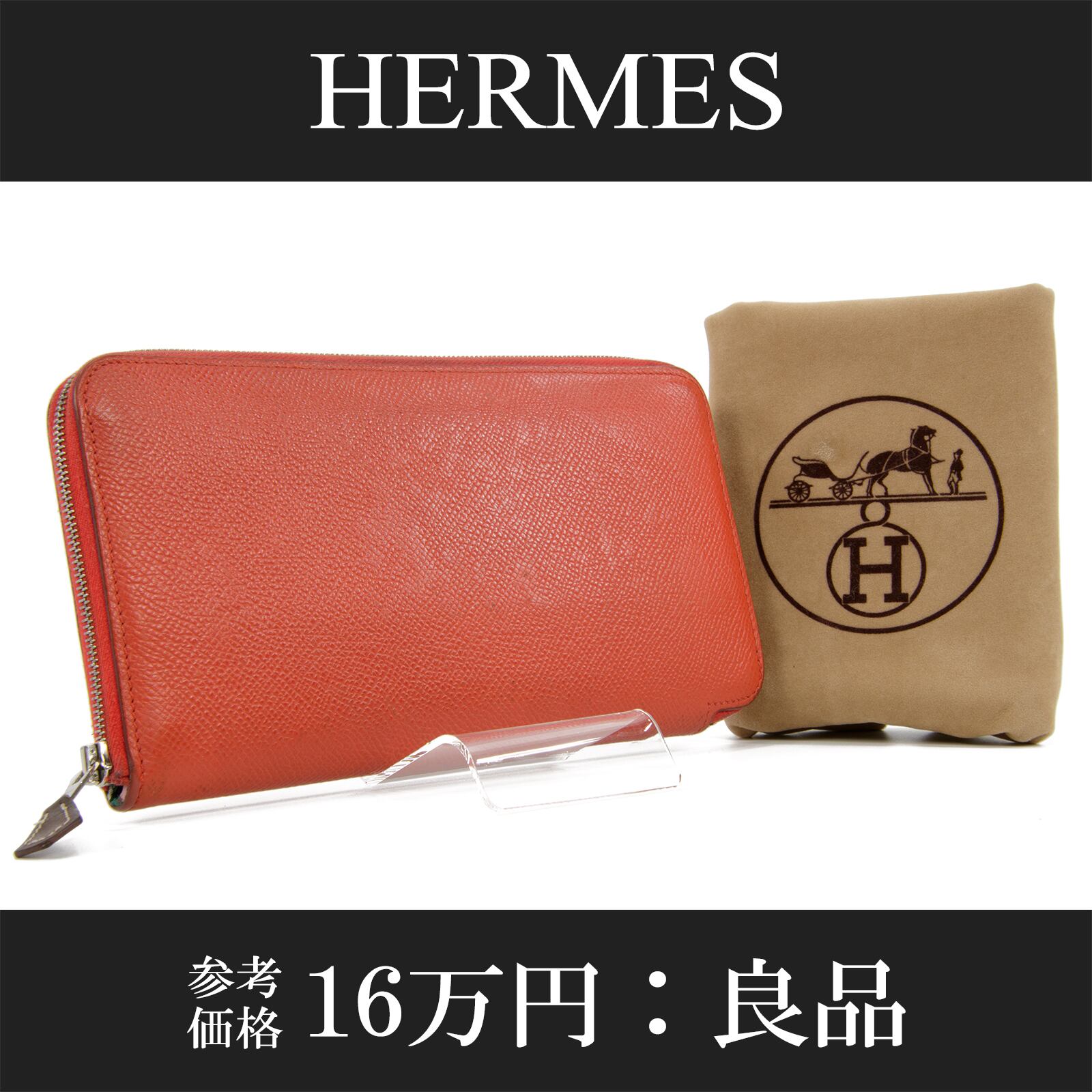 【本物・送料無料・良品】エルメス・長財布・ラウンドファスナー(アザップロング シルクイン・人気・珍しい・トマトレッド・D145)