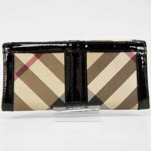 スーパーノバチェックのPVCとブラックパテントレザーの組み合わせが絶妙な、大容量のコンチネンタル財布。生地の裁断部分によって色柄の出方が異なっており、従来のバーバリーチェックとは違った繊細な個性にうっとりさせられます。