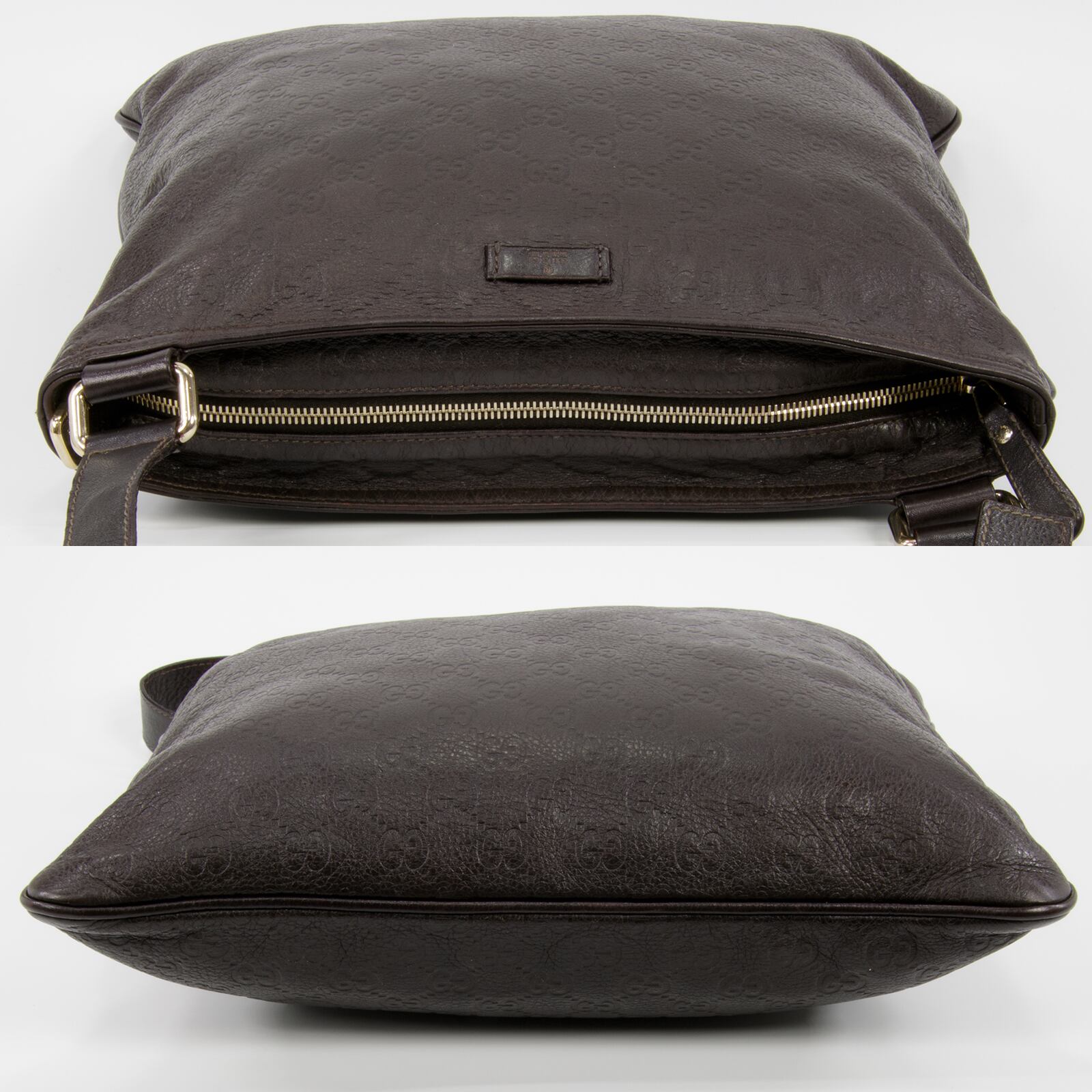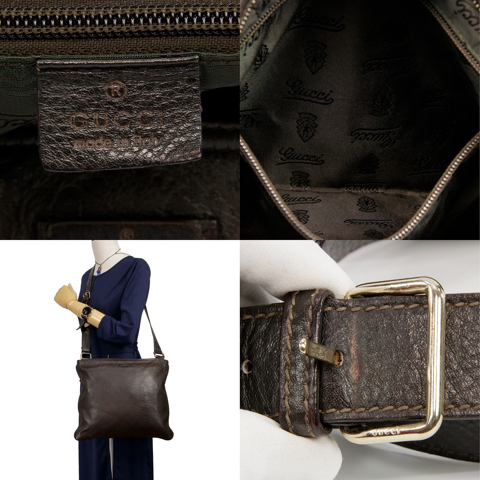 落ち着いた配色でありながら、GG総柄によって一目でグッチとわかる存在感があるグッチシマのクロスボディバッグ。高級皮革の深い味わいとエレガントな大人の魅力が感じられる逸品でございます。